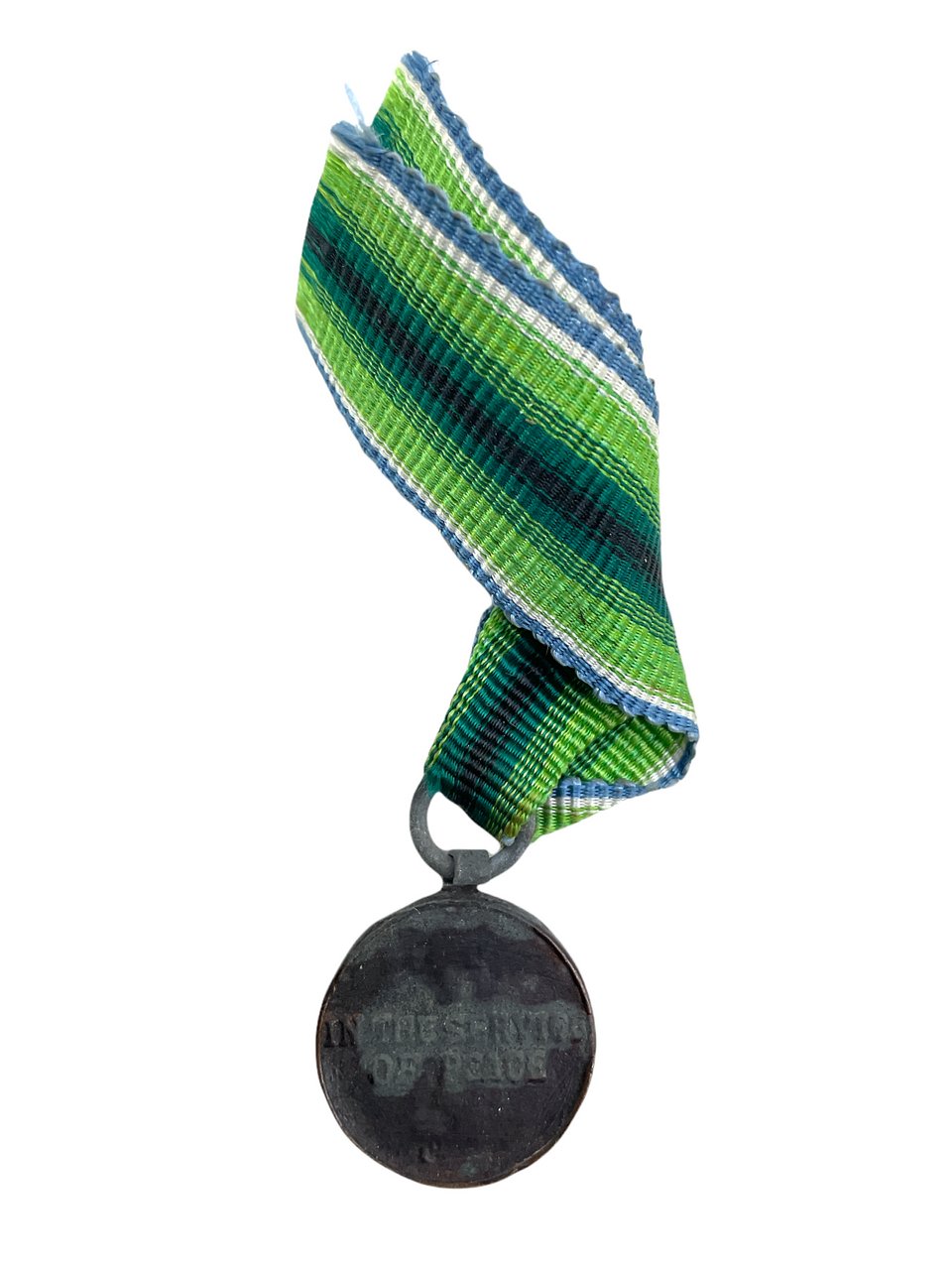 The “United Nations UN In Search Of Peace Miniature Medal” is a beautifully crafted emblem that signifies the pursuit and dedication towards global harmony and solidarity. This finely detailed miniature medal serves as a tribute to the United Nations’ continuous efforts in conflict resolution, humanitarian aid, and the promotion of peace across the world. It symbolizes the collective resolve of member nations to uphold the principles of justice, human rights, and mutual respect. Whether for a collector, a UN supporter, or someone passionate about global peace initiatives, this exquisite piece stands not only as a decorative item but also as a reminder of the ongoing quest for a peaceful world. Its compact size allows it to be easily displayed or worn, making it a meaningful and versatile addition to any collection.