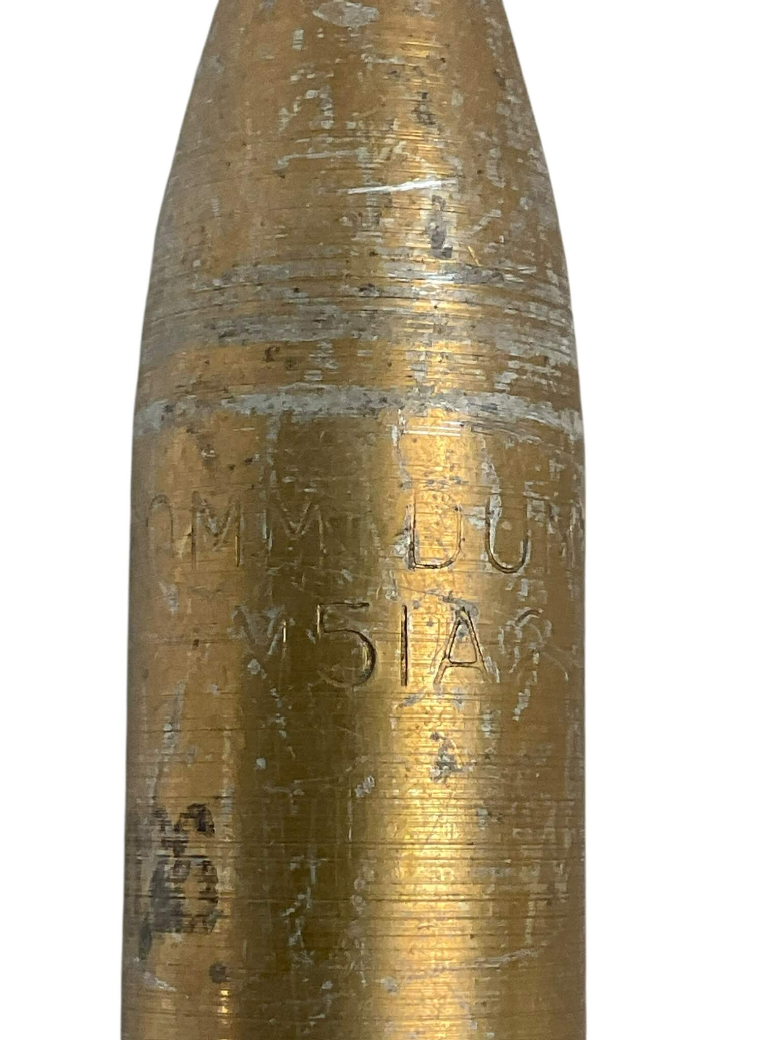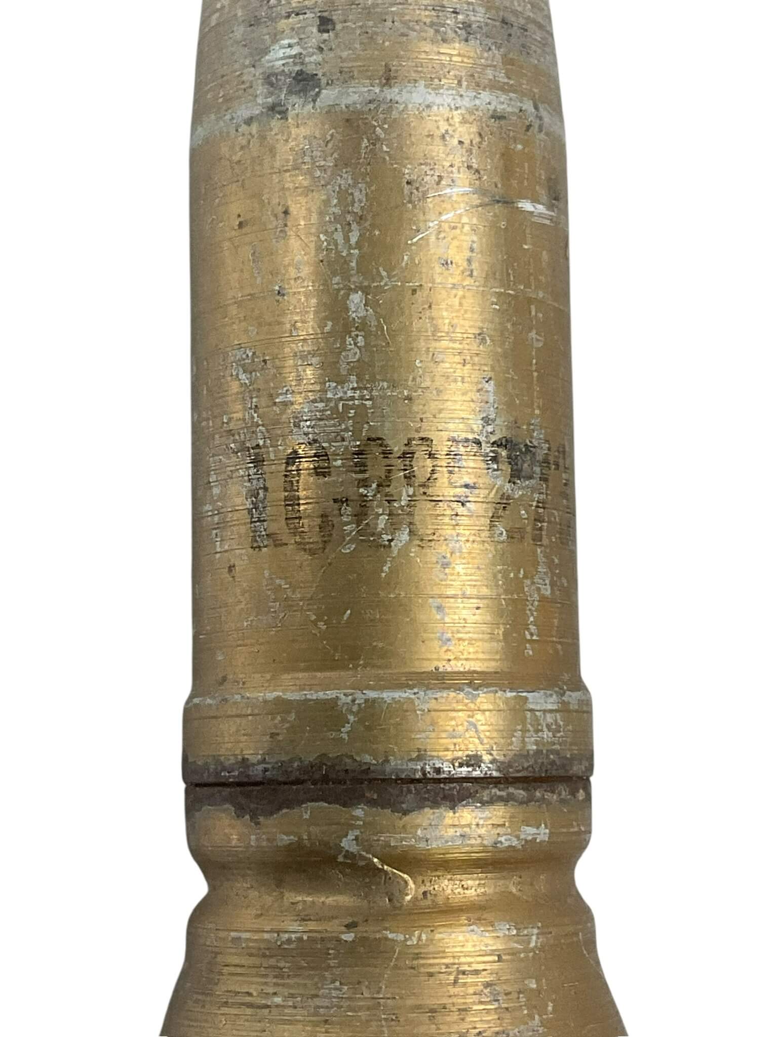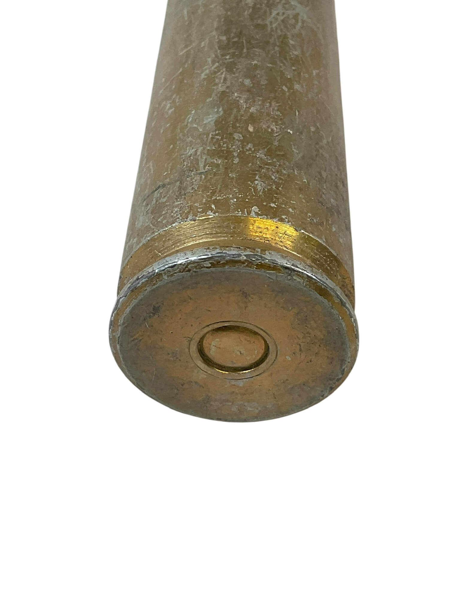 The US 20mm Dummy Round INERT is a non-functional replica of standard-issue 20mm ammunition, typically used for training or display purposes. Manufactured to replicate the size, weight, and appearance of live 20mm rounds, this inert example lacks any explosive or pyrotechnic components and cannot be fired. Such dummy rounds are commonly employed in military training exercises to familiarize personnel with the handling, loading, and unloading of real ammunition under safe conditions. The 20mm caliber has seen widespread use in various types of automatic cannons, including anti-aircraft guns and aircraft-mounted armaments, throughout the 20th century. The inert training round features appropriate markings, color, and construction materials consistent with U.S. military specifications. It serves as a reference specimen for collectors, historians, or educational institutions interested in military ordnance. This item is intended for display or instructional use only and is not capable of discharging any projectile.
