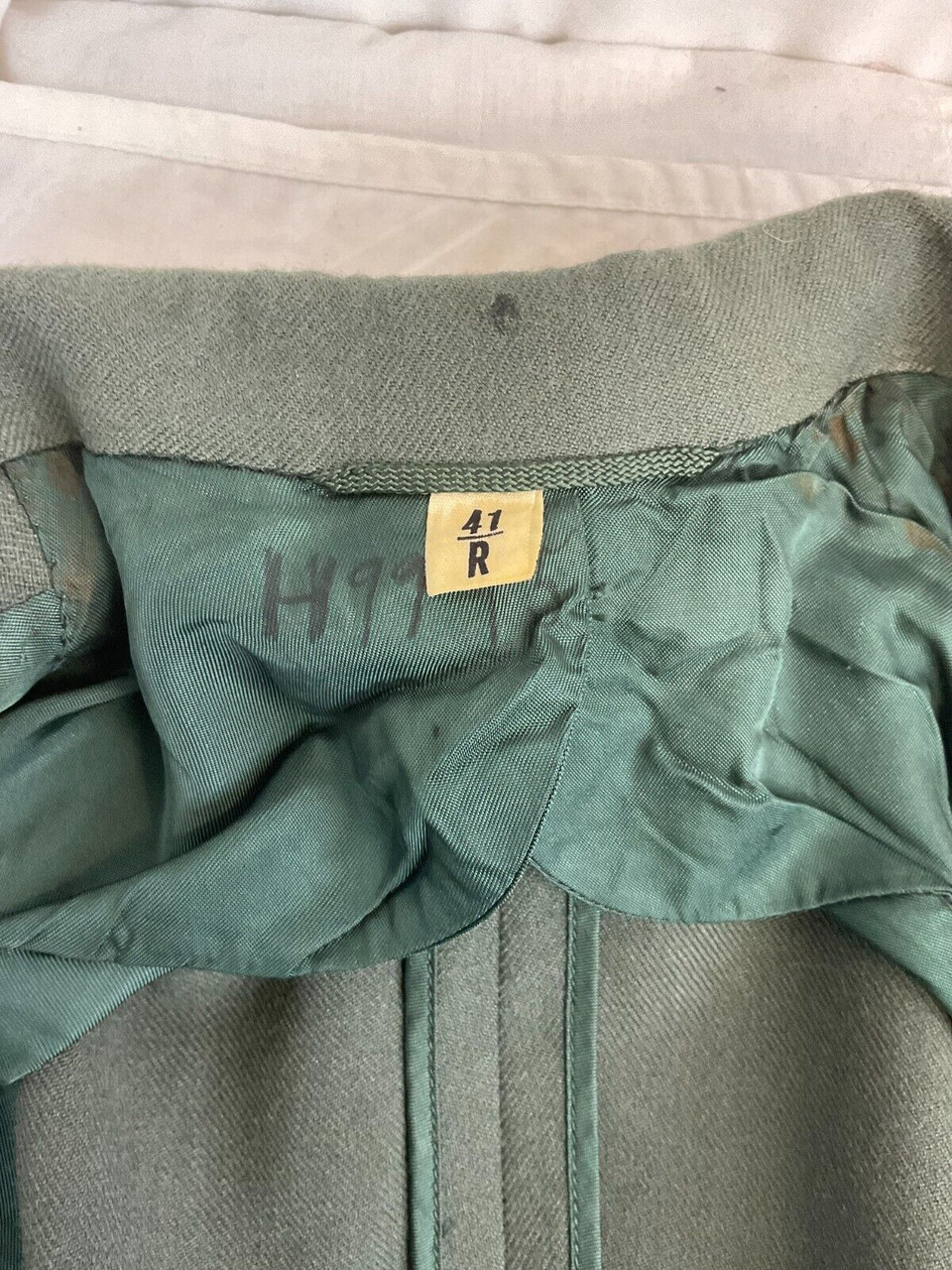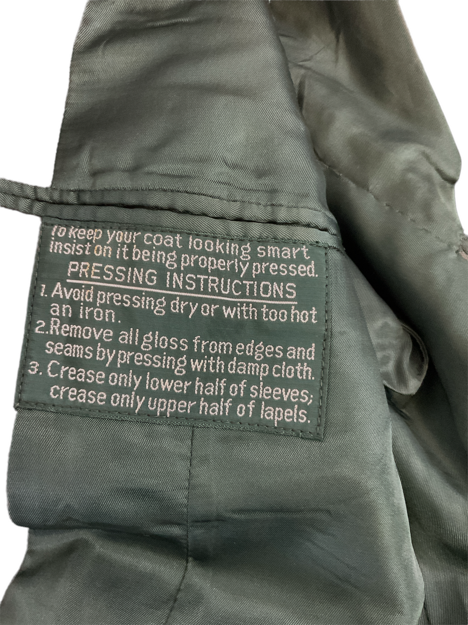 The US 3rd Army Patched Four Pocket Wool Serge Coat Jacket, sized 41 Regular, is a remarkable piece of military history. Crafted from durable wool serge, this vintage coat embodies the rugged elegance associated with the U.S. Army’s storied past. It features four spacious pockets, providing both functionality and a classic military aesthetic. The coat proudly displays the insignia of the illustrious 3rd Army, which played pivotal roles in World War II and other significant conflicts. Whether you’re a collector of military memorabilia or seeking a unique, authentic addition to your wardrobe, this jacket offers a tangible connection to the bravery and dedication of U.S. soldiers. The 41 R size ensures a comfortable fit for those with a regular build, making it a versatile piece for both display and wear. Embrace a piece of history with this distinguished wool serge coat.