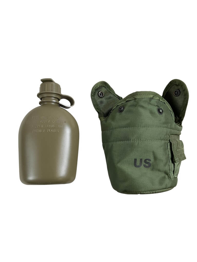 The ‘US Army 1 Quart Canteen With Cover’ is a highly durable and robust piece of military-grade equipment. Crafted with precision, this particular model has a capacity of 1 quart, making it perfect for extended outdoor adventures. The canteen is built to withstand harsh conditions and is well-suited for camping, hiking, or survival expeditions. Its design is based on standard issue US Army gear, providing an authentic touch to your outdoor kit. The product also includes a sturdy cover that offers extra protection, helping to keep the contents of the canteen secure and at the desired temperature. This canteen’s rugged construction and practical design make it a reliable choice for drinking water storage during any outdoor activity. It serves as a testament to the strength and resilience of the equipment used by the soldiers in the US Army.