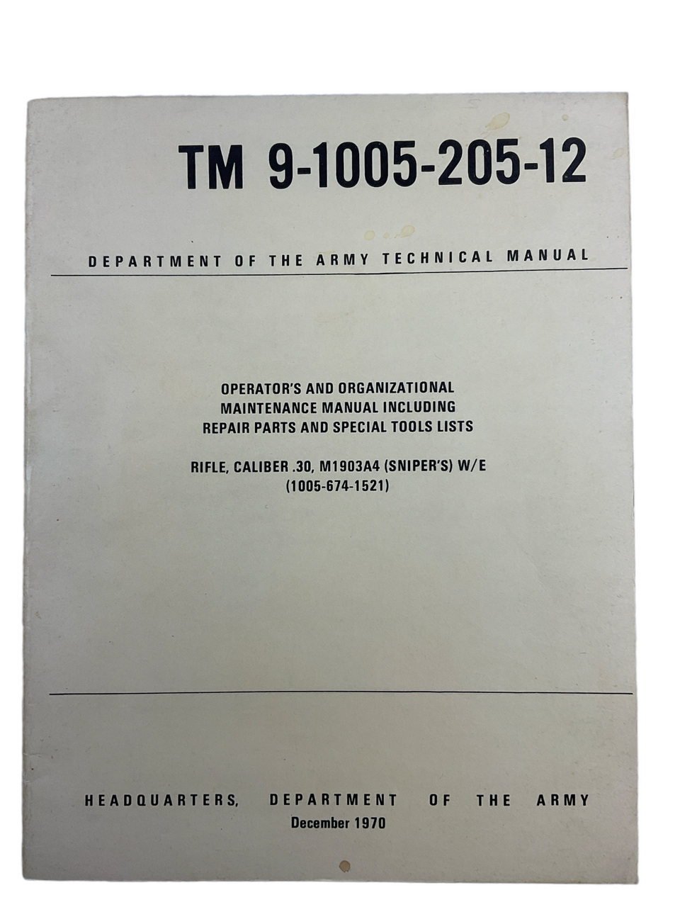This is a used softcover US Army 30 Caliber Sniper Rifle Parts Tools Lists Reference Book.  Total of 30 pages with lots of pictures and information.