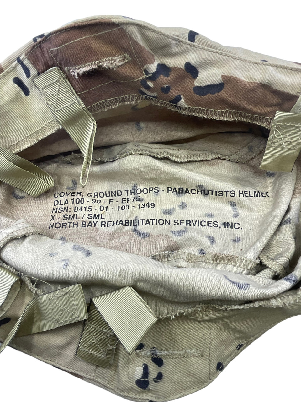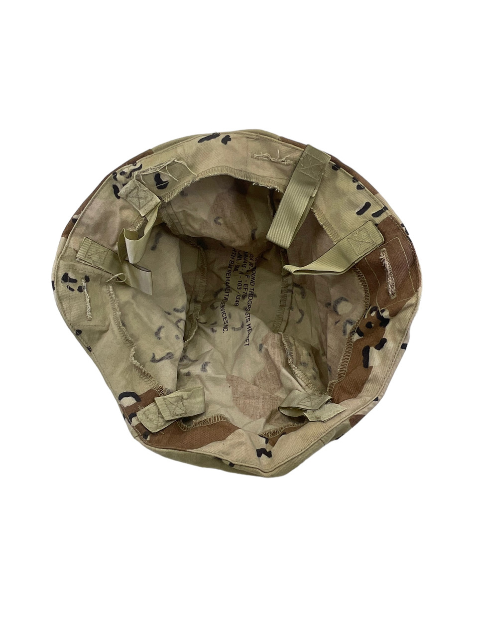 The US Army 6 Colour Chocolate Chip Helmet Cover is a distinctive piece of military gear, designed to provide camouflage and protection for soldiers in arid environments. This helmet cover is named for its unique “chocolate chip” pattern, which consists of six colors: brown, black, white, and varying shades of green and tan. These colors are strategically arranged to mimic the rocky, uneven terrain of desert landscapes, offering effective concealment. First introduced in the 1980s, this pattern gained significant use during Operations Desert Shield and Desert Storm in the Gulf War. Made from durable, high-quality materials, the cover is easy to attach and remove from the helmet, ensuring it stays securely in place during intense operations. The US Army 6 Colour Chocolate Chip Helmet Cover not only enhances the soldier’s camouflage but also adds a layer of protection to the helmet, preserving its integrity and extending its operational lifespan.