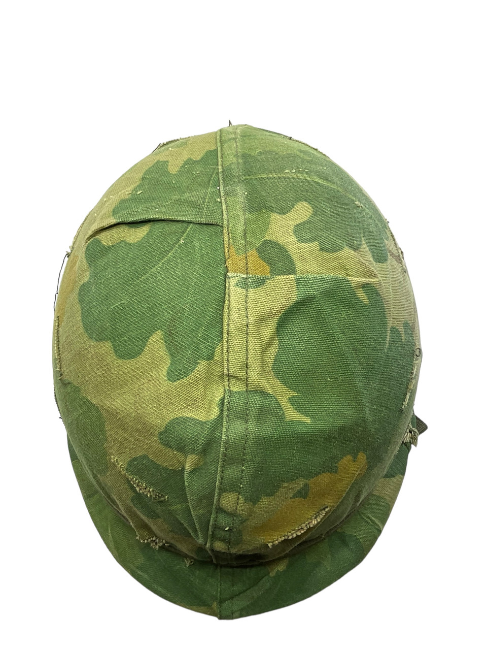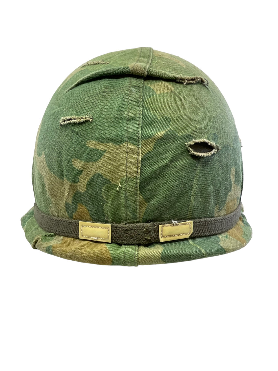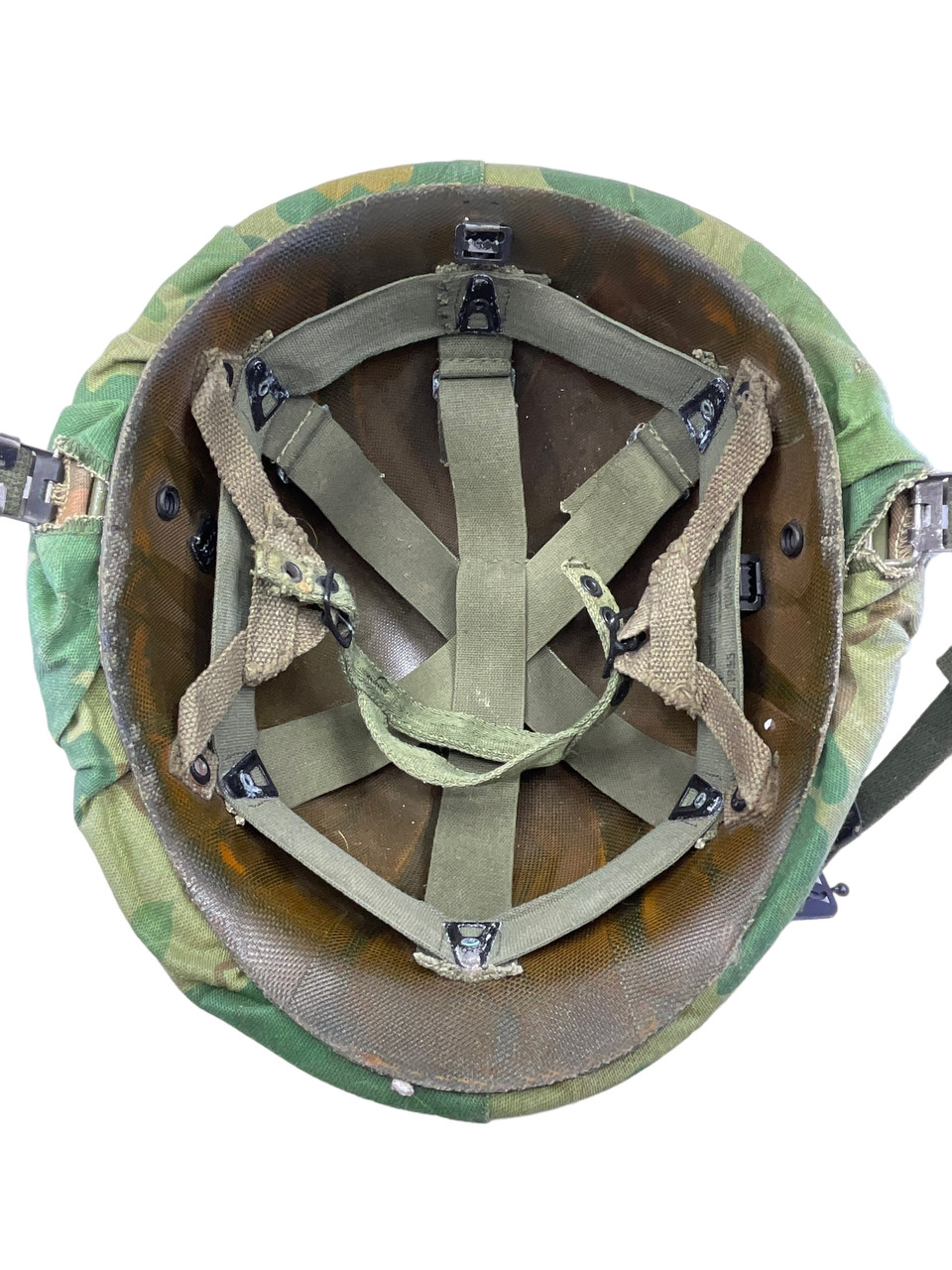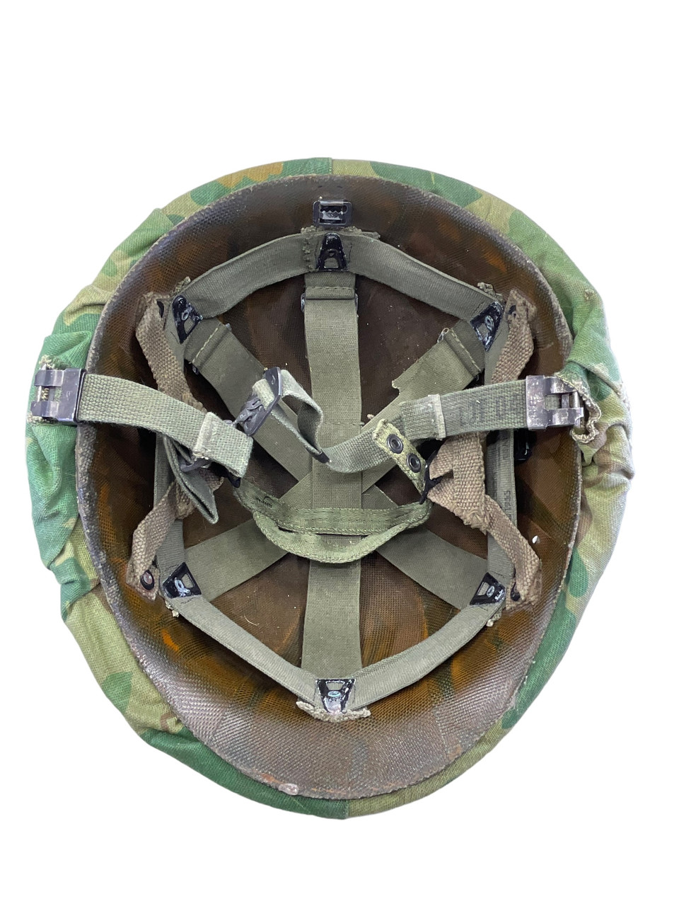 US Army Airborne M1 Rear Seam Swivel Bail Steel Helmet with Reversible Camouflage Cover 1967 Dated