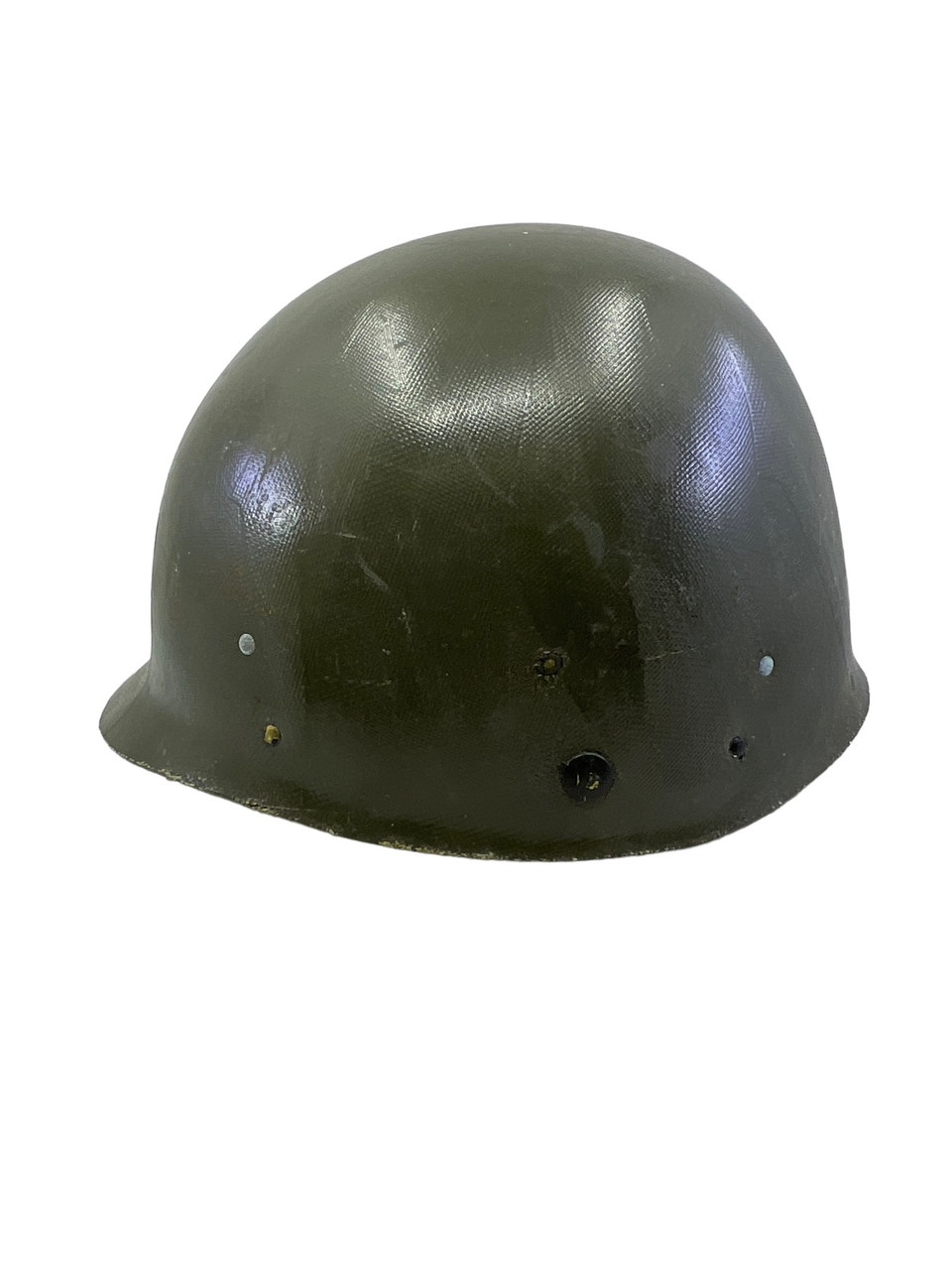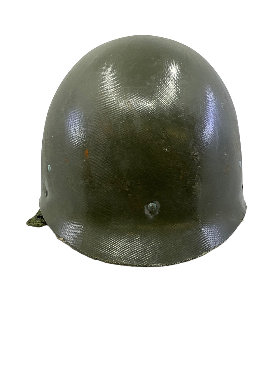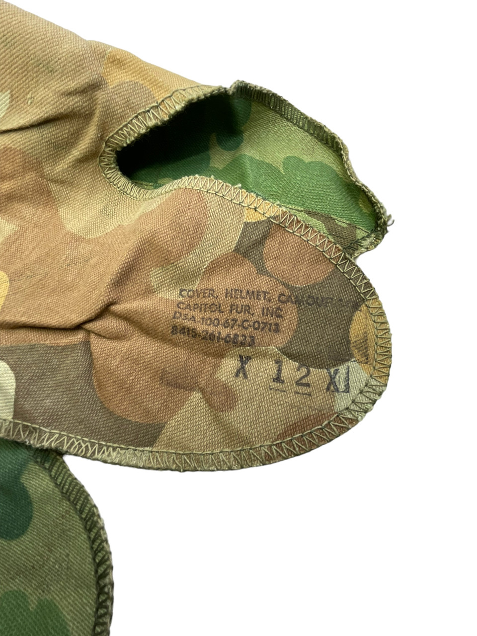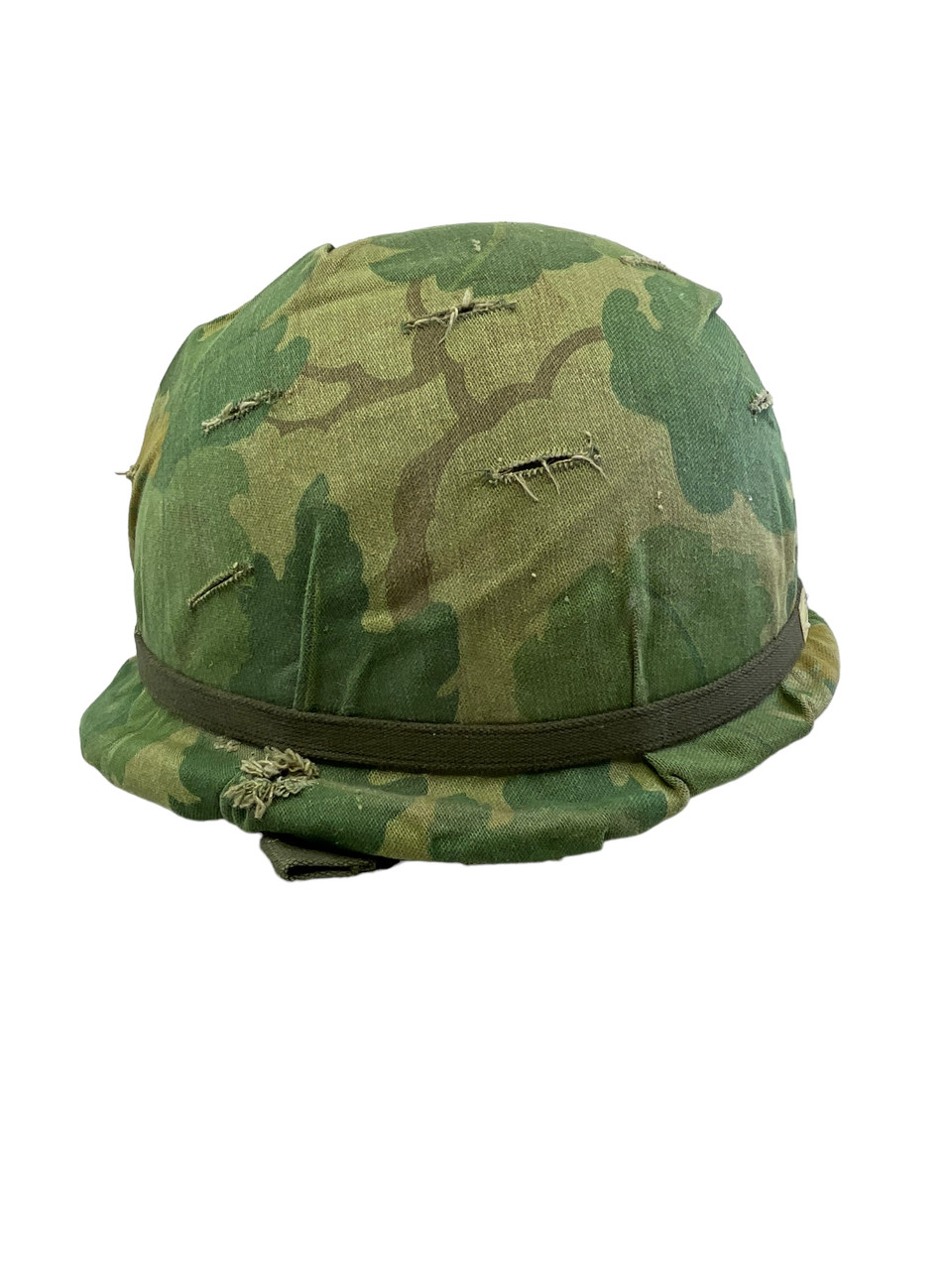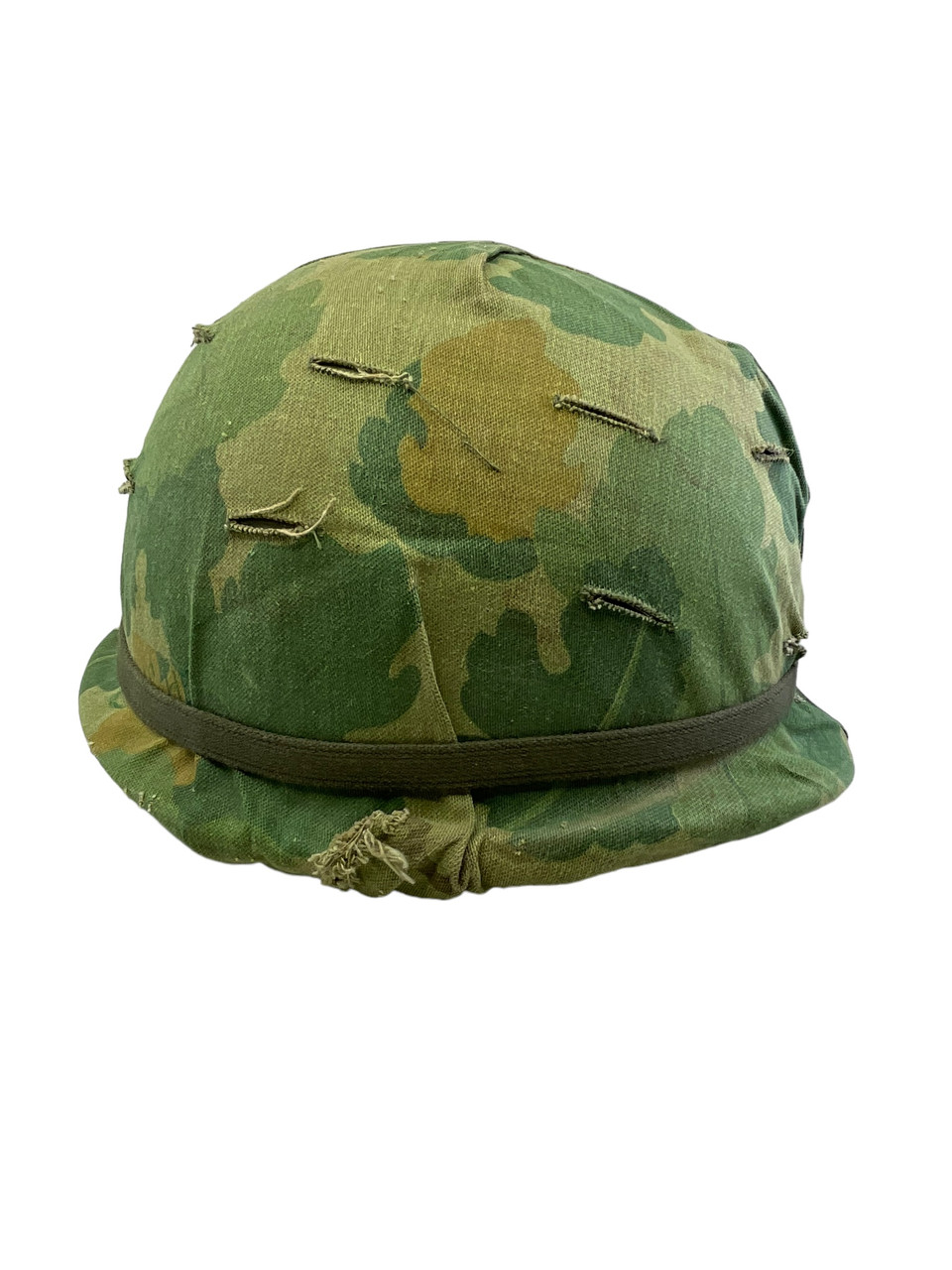 US Army Airborne M1 Rear Seam Swivel Bail Steel Helmet with Reversible Camouflage Cover 1967 Dated