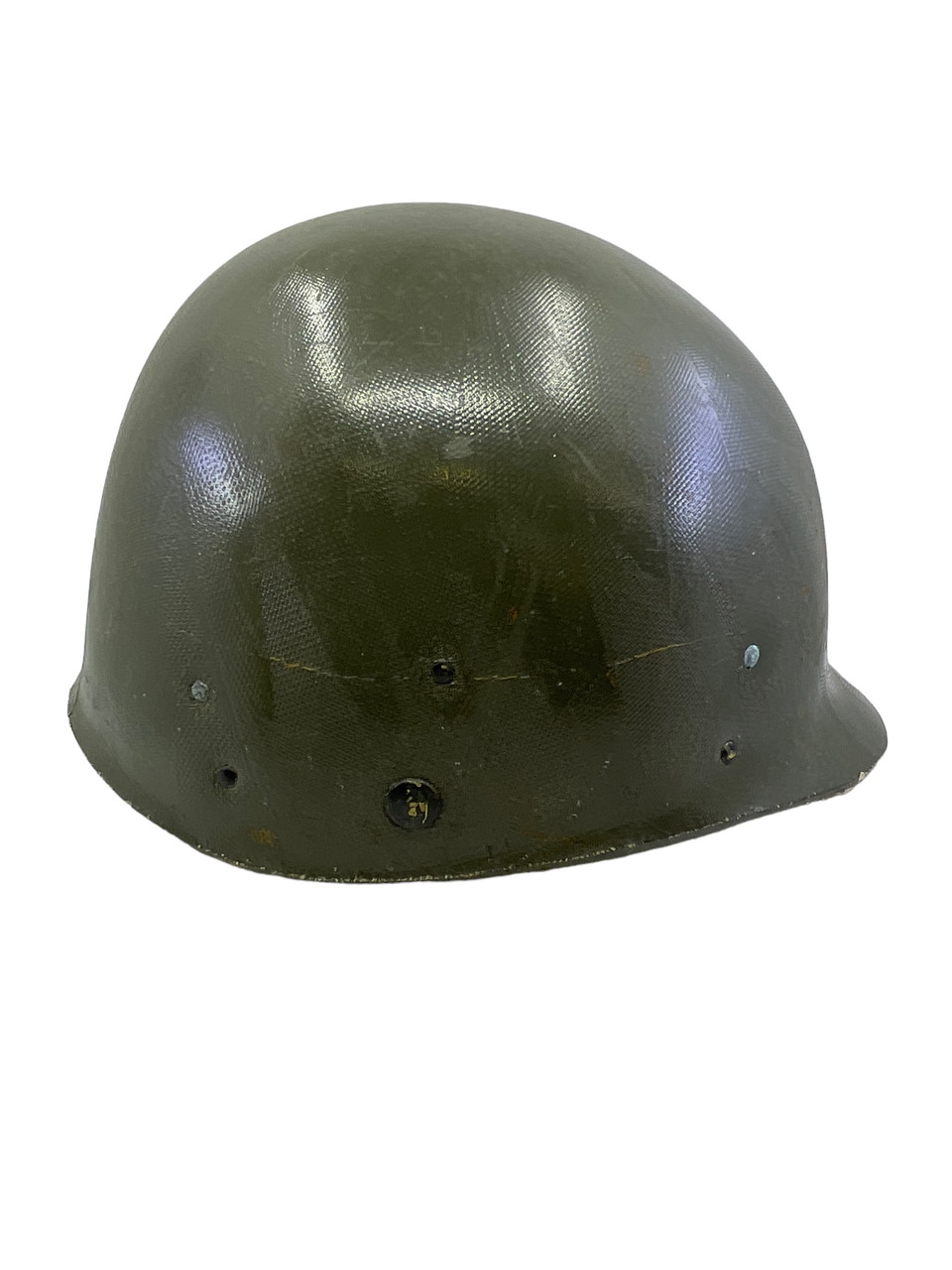 The US Army Airborne M1 Rear Seam Swivel Bail Steel Helmet is an iconic piece of military history. Dating back to 1967, this helmet was designed for airborne troops, offering robust protection and versatility in combat situations. It features a durable steel construction with a rear seam and swivel bail design, allowing for enhanced mobility and comfort. Accompanied by a reversible camouflage cover, this helmet is adaptable for different environments, providing effective concealment. The 1967 date stamp adds historical value, marking its use during a pivotal era. Whether for a collector, historian, or enthusiast, this piece represents the innovation and practicality of military gear from the Vietnam War era.