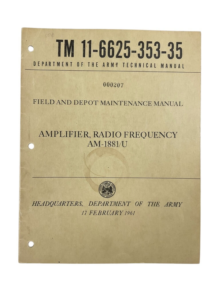 US Army Amplifier Radio Frequency AM-1881/U 17 February 1961 Used Softcover Reference Book