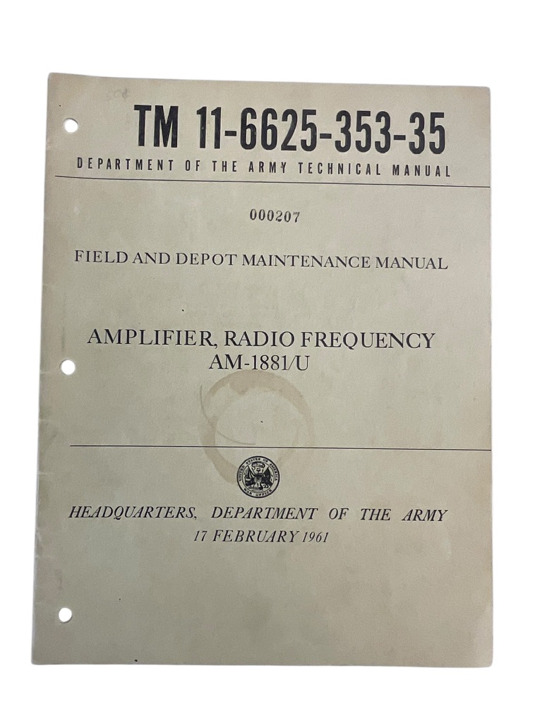 US Army Amplifier Radio Frequency AM-1881/U Maintenance Manual Reference Book