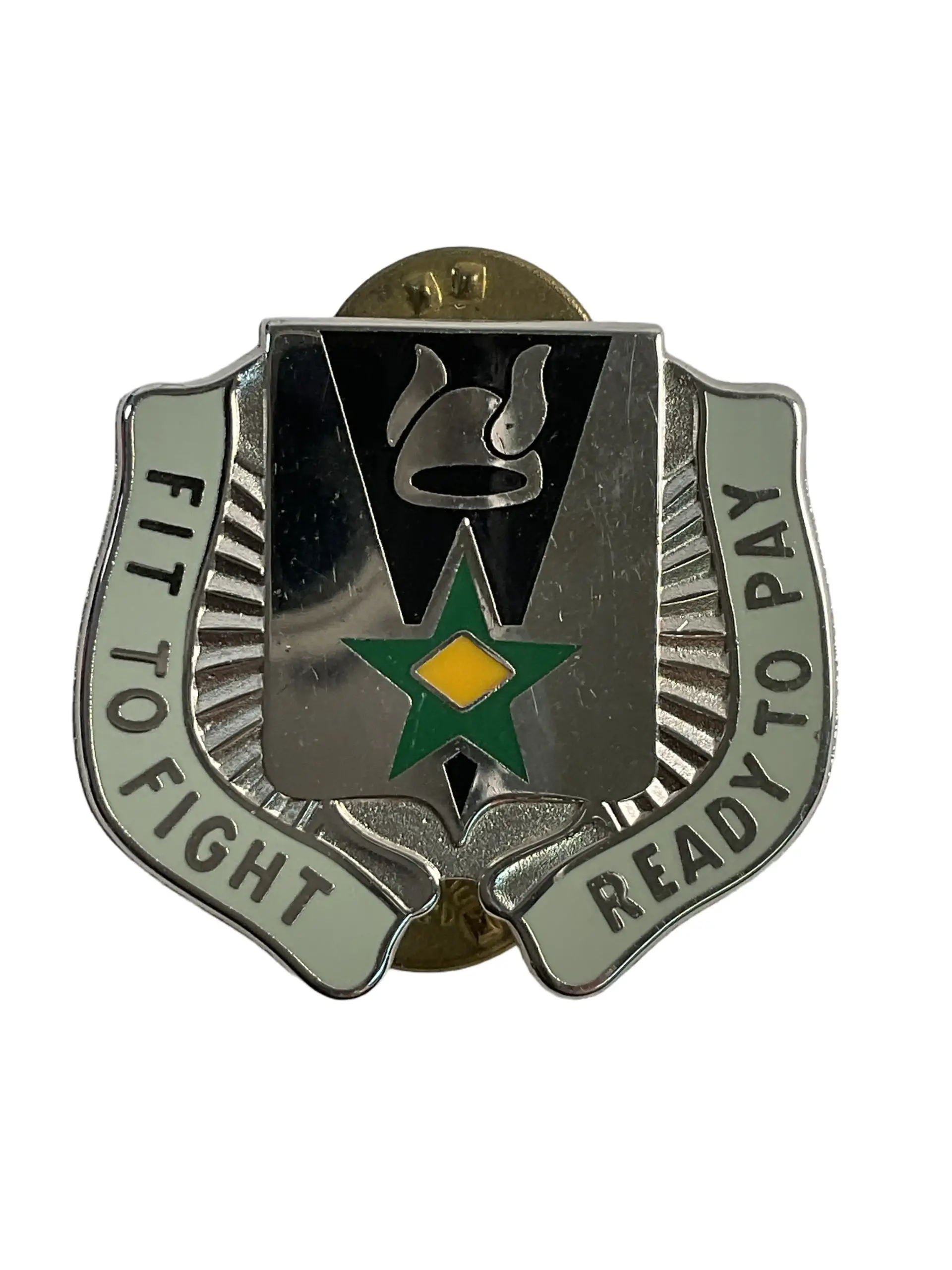 The US Army DUI Distinctive Uniform Insignia for the Special Troops Battalion, 4th Infantry Division, is a metal badge pin designed for wear on the Army Service Uniform. The insignia represents the identity and heritage of the Special Troops Battalion, a unit within the 4th Infantry Division, which serves in a variety of operational support capacities. The badge typically features the unit’s symbolic imagery and colors, which may include the distinctive ivy leaf emblem associated with the 4th Infantry Division. Measuring approximately 1 inch in height, the insignia is constructed to official military specifications and is equipped with a pin-and-clutch back for secure attachment. This piece is part of the Army’s long tradition of unique insignia that distinguish the roles and affiliations of its various units. The badge is used by current and former service members, as well as collectors of military memorabilia, to signify unit association.