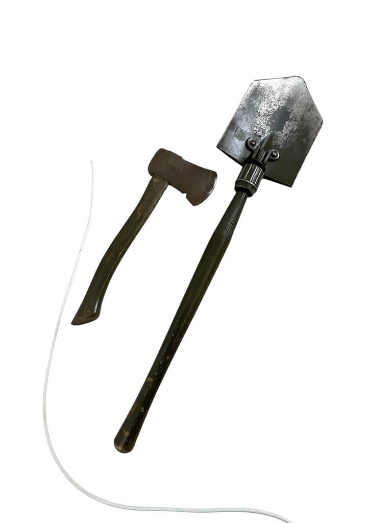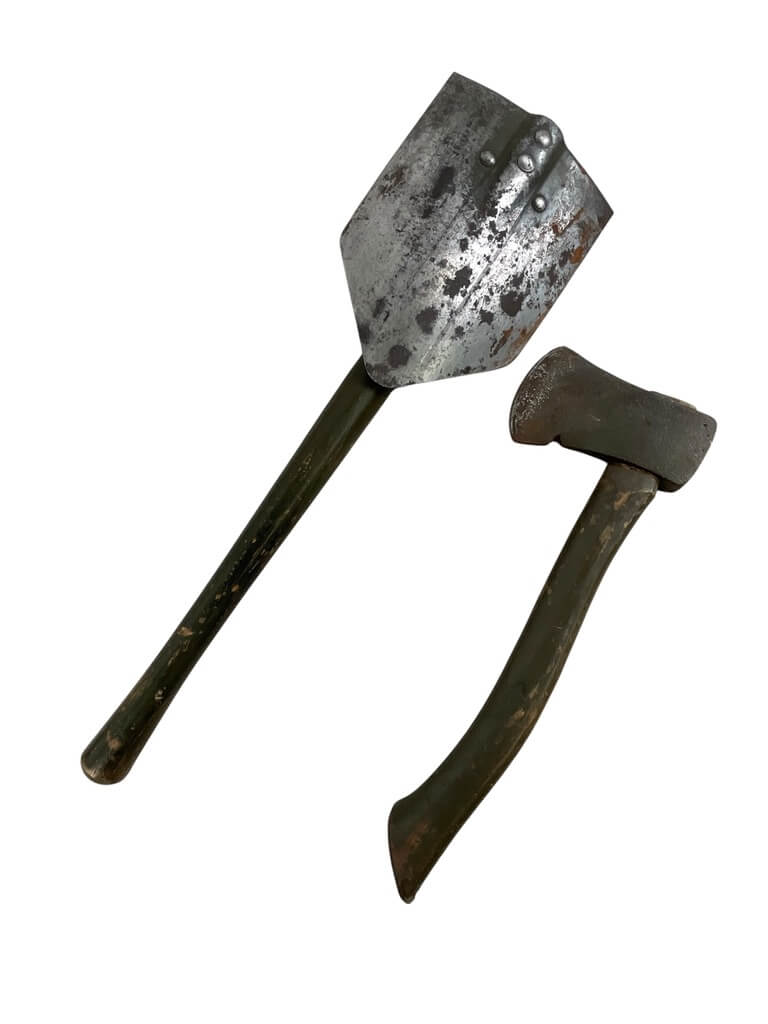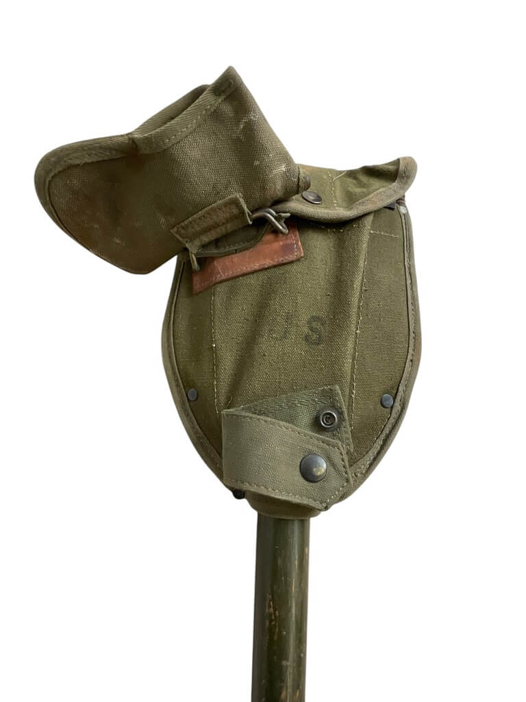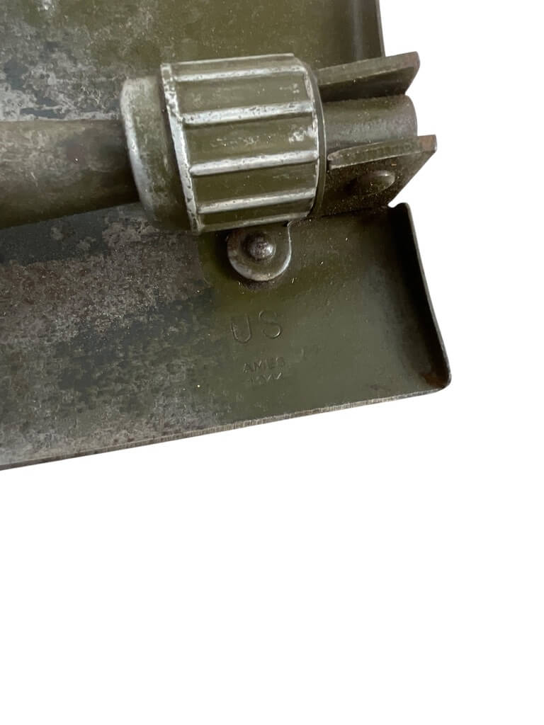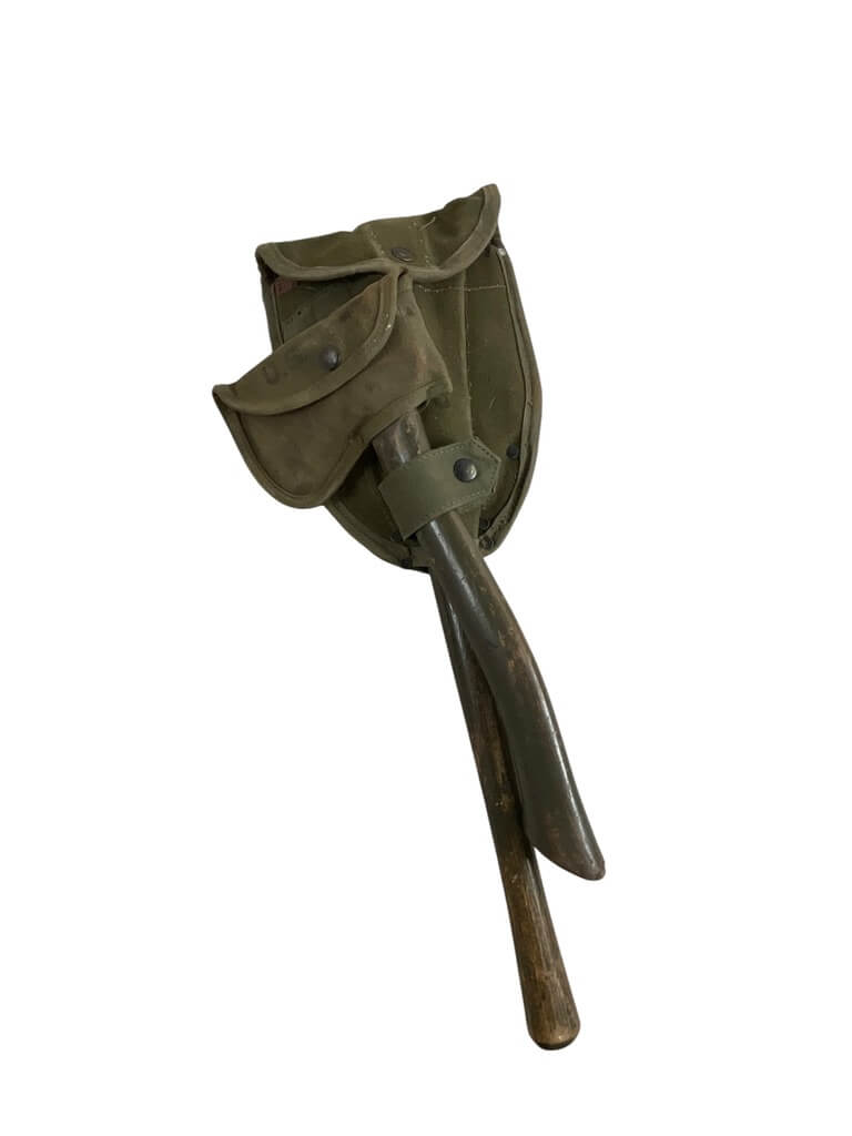 The ‘US Army E-Tool and Axe Carrier Shovel Dated 1944’ is a remarkable piece of military history. This authentic artifact from World War II is an outstanding example of the functional equipment used by American soldiers on the frontline. The E-Tool, also known as entrenching tool, is a collapsible spade used for a variety of military purposes such as digging trenches, while the axe carrier was used to carry a small combat axe. Both these tools were essential for survival in harsh war conditions. The shovel is dated 1944, a crucial year in the war, adding a significant historical value to this item. These tools, made from sturdy and durable materials, showcase the practical design and craftsmanship of the time. This rare find is a must-have for military enthusiasts and history collectors.