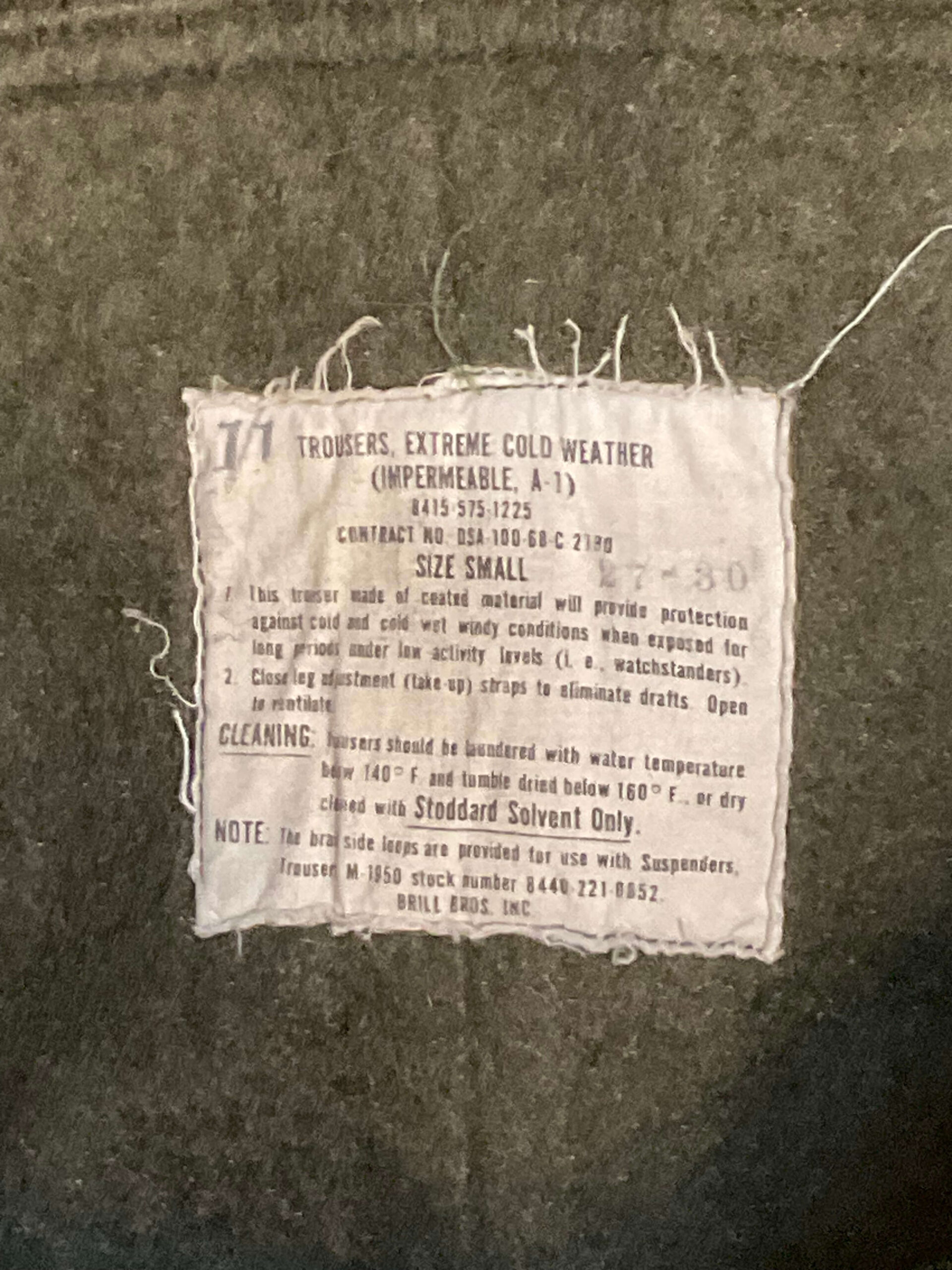US Army Extreme Cold Weather Trousers Pants Dated 1965 Size Small