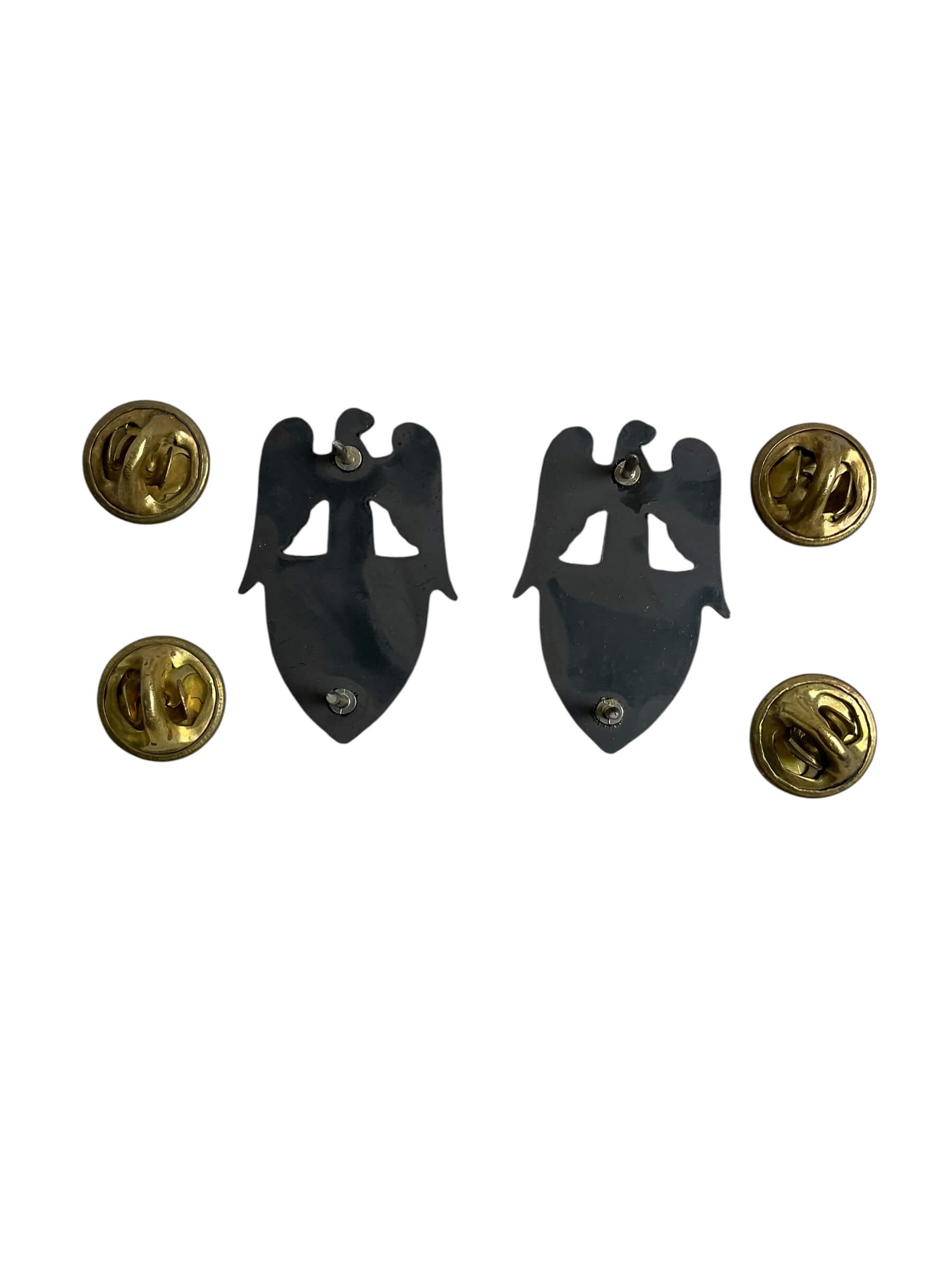 The ‘US Army General Officer Lt. General Subdued Collars Insignia Pair’ is a prestigious set of symbols, originally designed and crafted for display by high-ranking military personnel in the United States Army. The pair consists of meticulously crafted insignia for Lieutenant Generals, showcasing incredible attention to detail and precision. These subdued collar insignias are characterized by their understated yet elegant design, making them perfect for formal and ceremonial attire. The pair is fashioned from durable, high-quality materials to withstand the rigors of service and time. It’s a magnificent tribute to the rank and position of a Lieutenant General, reflecting the honor, dignity, and responsibility associated with this rank. Ideal for collectors, military enthusiasts, or veterans, it serves as a tangible symbol of dedication and commitment to the US Army.