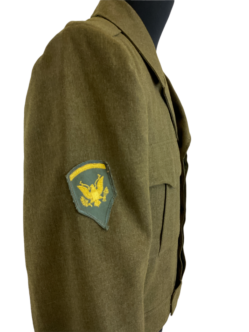 Step into a piece of history with this authentic US Army Ike Jacket, proudly showcasing its original insignia. This size 38R jacket is a timeless artifact from the mid-20th century, named after General Dwight D. “Ike” Eisenhower, who inspired its design during World War II. Crafted with attention to detail, it features classic military tailoring that offers both a distinguished look and durable wear. The included insignia add a layer of authenticity, making it not just a garment but a collector’s item that speaks volumes about its era. Whether you’re a history enthusiast, a collector of military memorabilia, or simply looking to add a unique and storied piece to your wardrobe, this Ike Jacket stands out as a remarkable and evocative choice. Don this jacket and connect with the valor and tradition of the US Army.