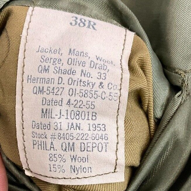 US Army Ike Jacket With Insignia Size 38R