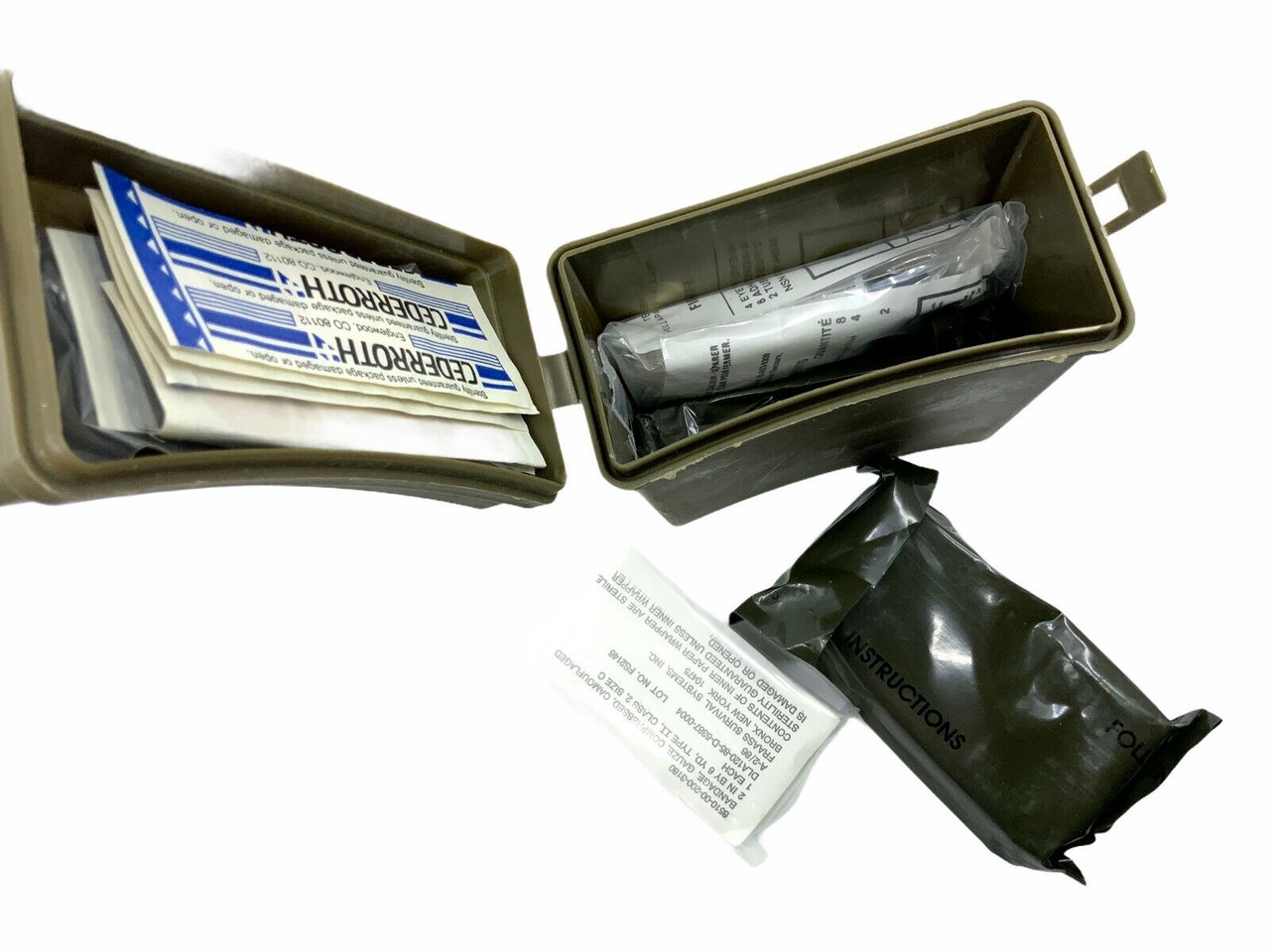 The ‘US Army Insert First Aid Kit Case & Contents’ represents a compact yet comprehensive medical solution designed for emergency situations. This kit includes a durable, weather-resistant case engineered to withstand tough field conditions, ensuring protection and longevity. Inside, you will find a meticulously organized array of essential medical supplies. These include bandages, antiseptics, gauze, medical tape, scissors, tweezers, and various other tools necessary for treating wounds and injuries. The kit is designed with user convenience in mind, featuring clear labeling and compartments for quick access during critical moments. Whether you are a military professional, a first responder, or an outdoor enthusiast, the ‘US Army Insert First Aid Kit Case & Contents’ provides peace of mind and readiness when it matters most. Be prepared and equipped to handle medical emergencies efficiently with this essential first aid kit.