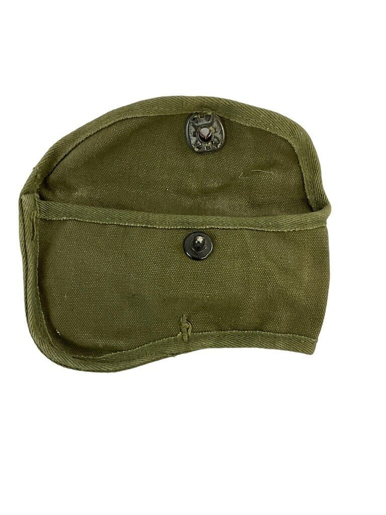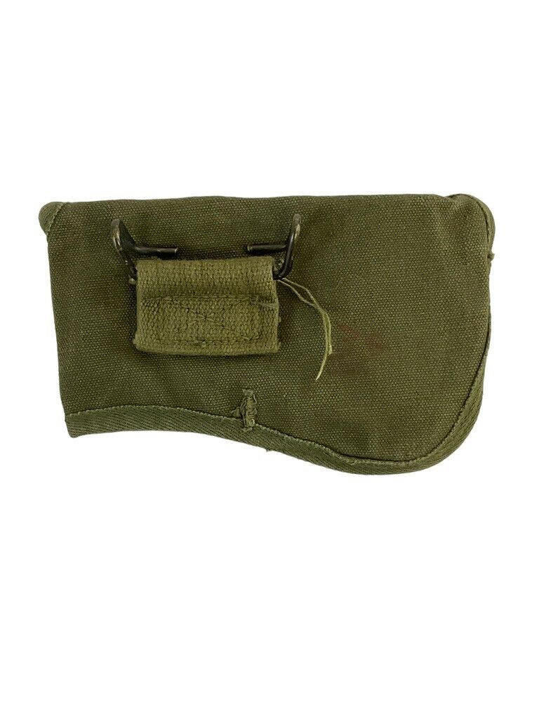 The US Army Korean War Axe Carrying Pouch is a vintage military accessory designed during the Korean War era for soldiers to transport and protect their axes. This pouch reflects the practical and rugged design essential for the challenging conditions faced by service members. Made from durable canvas material, it features reinforced stitching and sturdy leather straps with metal buckles to ensure the axe remains securely fastened. The pouch has an easily accessible flap cover, providing quick access while maintaining safety. Its utilitarian design includes loops and attachment points for effortless integration with other military gear, such as belts and backpacks. Collectors and history enthusiasts value this pouch for its authenticity and ability to convey the resilience of the soldiers who served during the Korean War. The US Army Korean War Axe Carrying Pouch is not just a functional item but a piece of history, offering insight into the daily life and equipment of American troops.