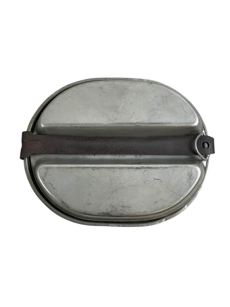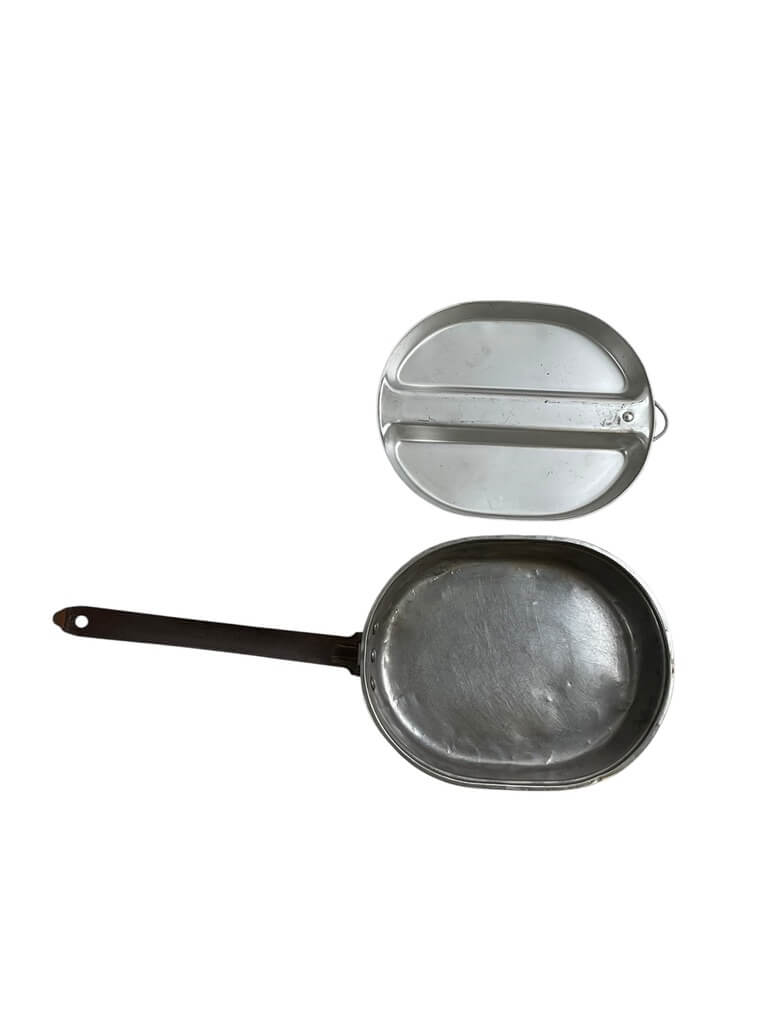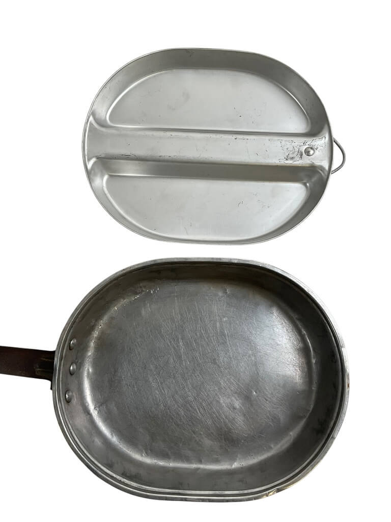 This is an authentic US Army Korean War Mess Tin from 1952, a genuine piece of military history. It’s made from sturdy, durable metal, designed to withstand the harshest of conditions. The mess tin exhibits the practical and compact design typical of military field gear, allowing soldiers to carry their food and drink in a single, easy-to-transport container. Despite its age, the tin is in remarkably good condition, bearing the telltale signs of use but free of any significant damage. The 1952 date is clearly stamped on the tin, offering a tangible link to the tumultuous era of the Korean War. This item not only provides a fascinating glimpse into the past, but also a testament to the resilience and resourcefulness of the soldiers who used it. A great addition for any military history enthusiast, collector, or anyone with an interest in the Korean War era.