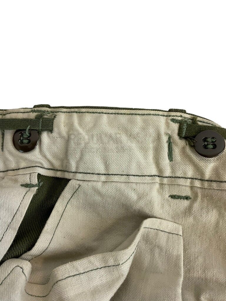 Introducing authentic US Army Korean War Straight Leg Trousers, designed for both collectors and history enthusiasts. These vintage military pants, with a size 28 waist, are a remarkable piece from the Korean War era, reflecting the durability and style of the 1950s military uniform. Crafted from high-quality materials to withstand rugged conditions, these trousers feature a straight leg cut, offering a timeless and practical fit. The olive drab color and reinforced stitching highlight the classic military aesthetic, ideal for reenactments, historical displays, or as a stylish vintage addition to any wardrobe. Whether you’re seeking to preserve a piece of military history or looking for unique, durable pants, these US Army trousers are a noteworthy find. Don’t miss the opportunity to own a genuine article of military heritage with these well-constructed trousers, preserving the legacy of the brave servicemen of the Korean War era.