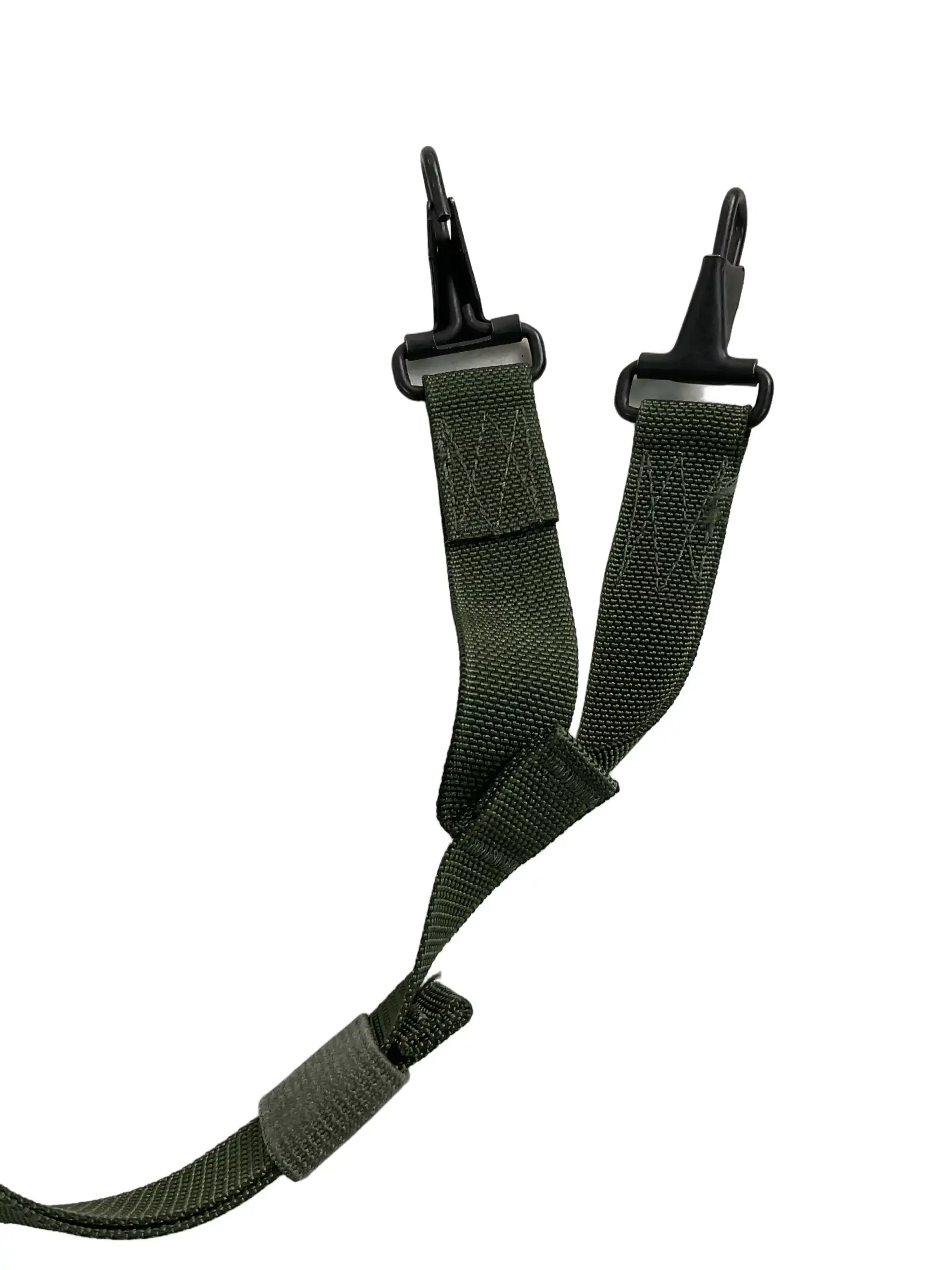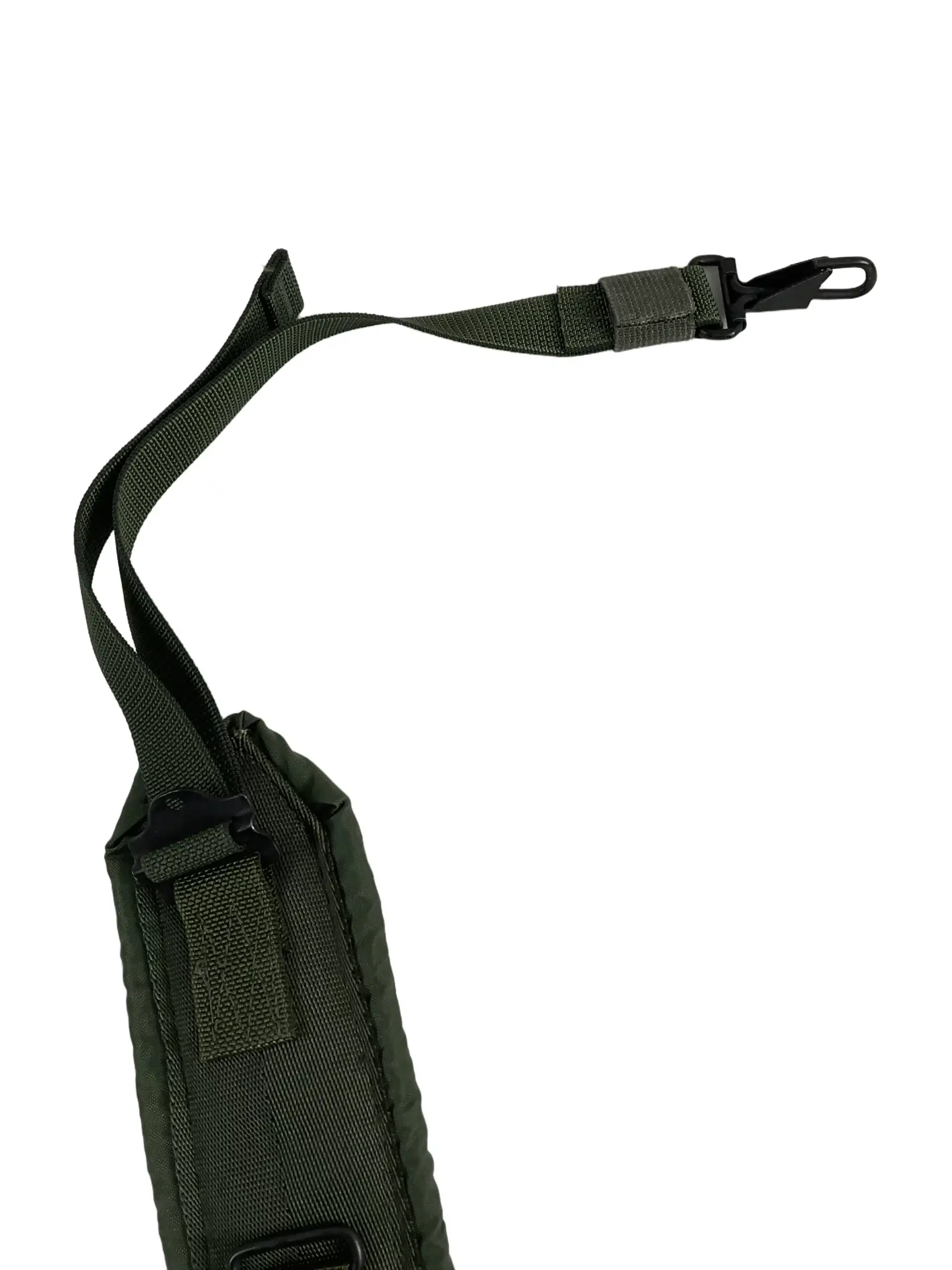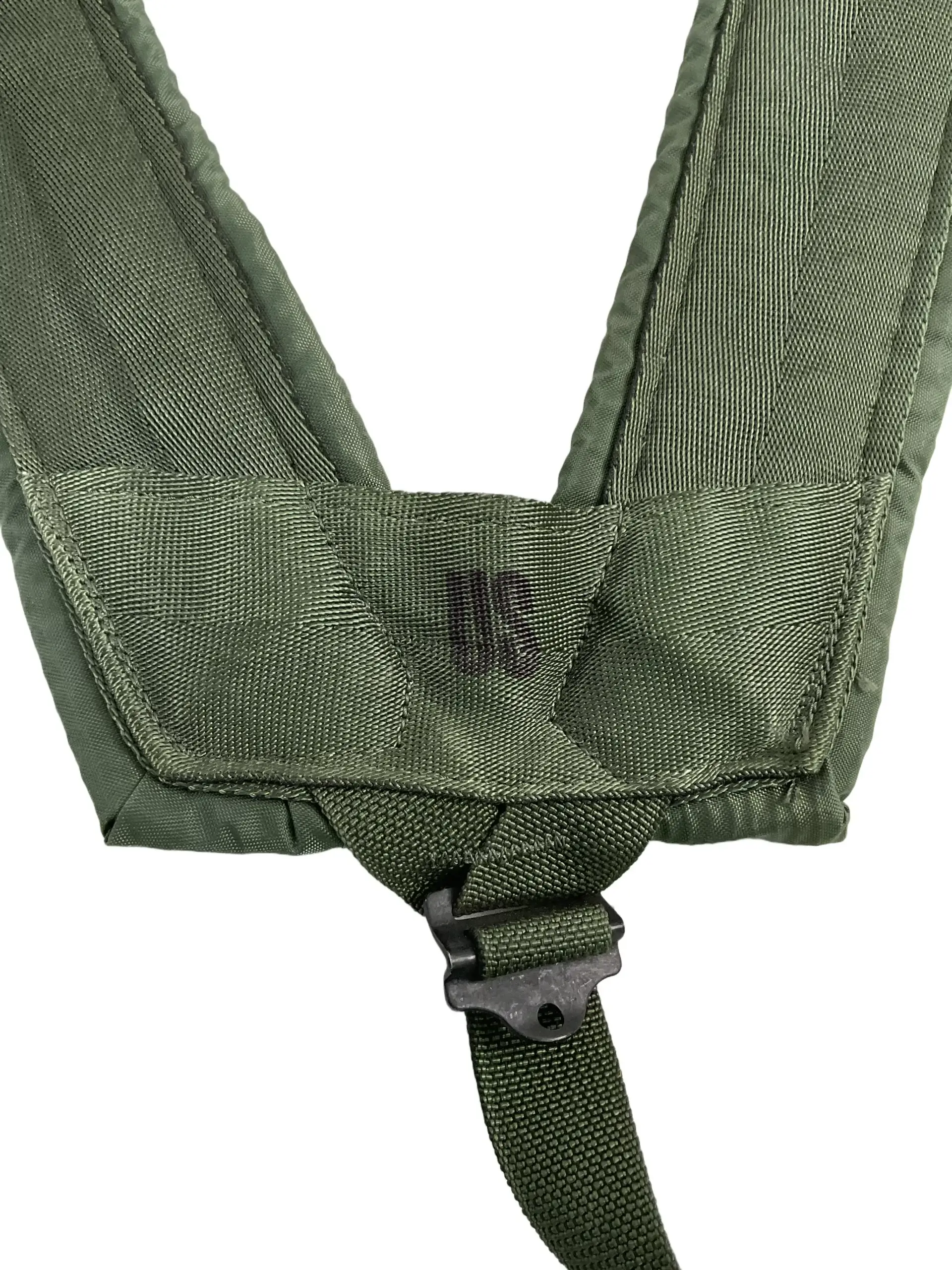 The US Army LC2 Y Strap Dated 2003 is an integral component of the Load Carrying Equipment system used by the United States Army during the late twentieth and early twenty-first centuries. Designed to distribute the weight of field gear evenly across the user’s shoulders and back, the LC2 Y Strap connects to the load-bearing belt and suspends attached pouches and equipment. This particular example is marked with a 2003 date, indicating production in the early 2000s. Constructed from durable nylon webbing in an olive drab color, the Y strap features metal adjustment hardware and reinforced stitching at key stress points to ensure strength and reliability. The LC2 Y Strap was widely used for securing field gear in a range of operational environments and remains recognizable for its practical and straightforward design. This item illustrates the evolution of US military personal equipment prior to the transition to newer modular load systems.