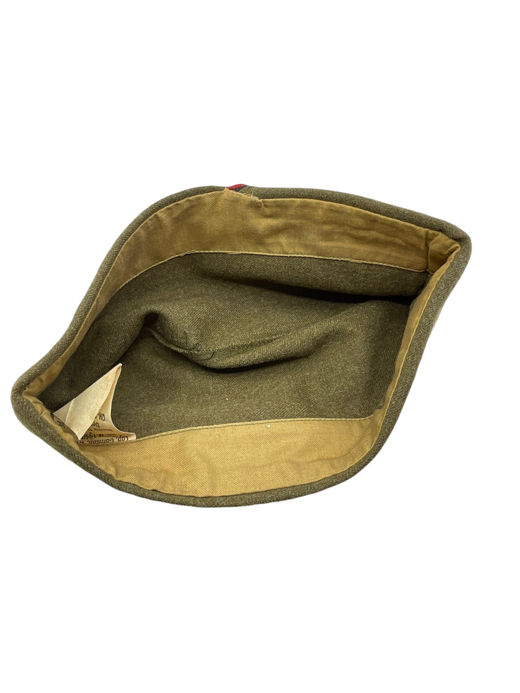 The US Army M-1950 Artillery Garrison Cap Size 7 Dated 1952 is a vintage piece of military attire that carries historical significance. Originally designed for the US Army Artillerymen, this cap represents the strict discipline and determination that marked the era of the early 1950s. The cap is in size 7, providing a comfortable fit for most adults. It features an emblematic design with a distinctive side fold, reflecting the unique style of the M-1950 military uniform. The cap’s color, often a shade of green or khaki, further adds to its authentic look. Dated back to 1952, this item is not just a cap, but a piece of history, symbolizing the bravery and dedication of the American soldiers during that period. This is an ideal collectible for military enthusiasts or vintage collectors.