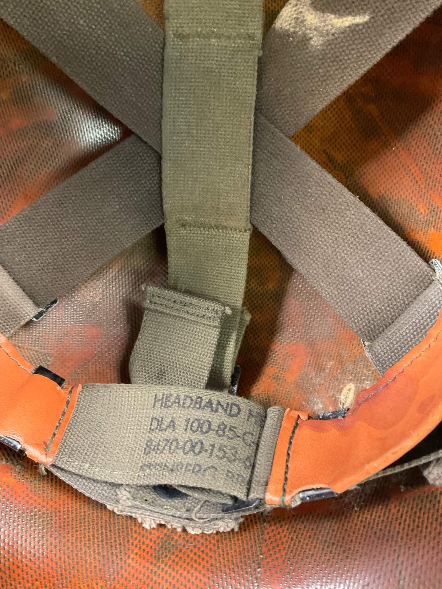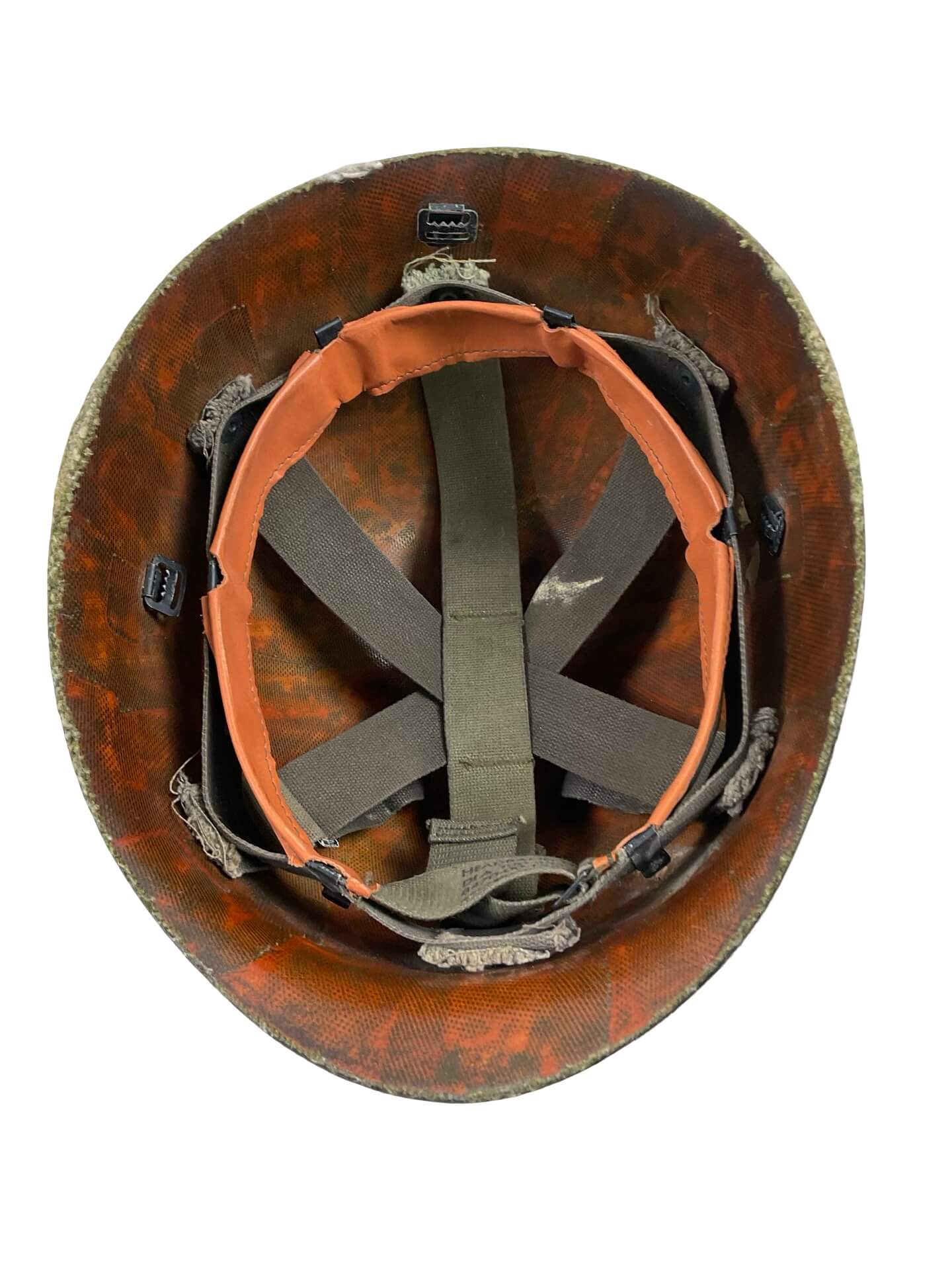 The US Army M1 Helmet Liner Military Police Air Defence Artillery School is a component of the standard-issue M1 helmet used by American forces from World War II through the 1980s. This liner was designed to fit inside the steel M1 helmet shell, providing additional comfort and stability for the wearer. Constructed from high-pressure molded fiber or thermoplastic materials, the liner features an adjustable suspension system. This example is designated for Military Police and personnel associated with the Air Defence Artillery School, as indicated by the distinct insignia or markings present on the liner’s exterior. Such liners were commonly used in training and ceremonial contexts, as well as for specific duty assignments. The liner includes standard fittings such as webbing, sweatband, and chinstrap attachments. Items of this type illustrate the role of specialized units within the postwar US Army and demonstrate the evolution of personal protective equipment during the mid-20th century.