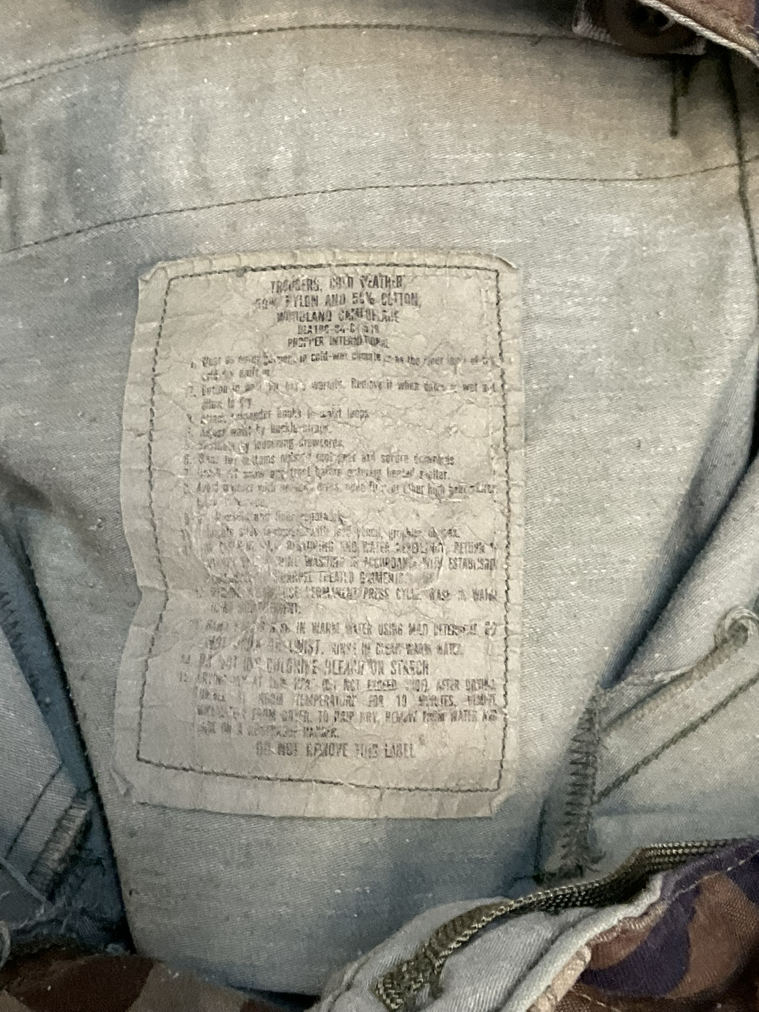 The US Army M65 BDU (Battle Dress Uniform) Woodland Trousers in size Medium Long are standard-issue military field pants developed for use by the United States Army from the 1960s through the early 2000s. Constructed from a durable cotton-nylon blend, these trousers feature the iconic four-color woodland camouflage pattern designed for versatility in temperate and forested environments. The M65 model includes adjustable waist tabs, reinforced seat and knees, and drawstring leg closures, supporting both fit and protection during field operations. Two front slash pockets, two rear buttoned pockets, and two large cargo pockets on the thighs offer ample storage for equipment. The Medium Long sizing indicates suitability for individuals with a medium waist and a longer inseam length. These trousers reflect the transition period of US military uniforms during the Cold War and are representative of the standard field attire worn by American service members in various conflicts and training exercises throughout this era.