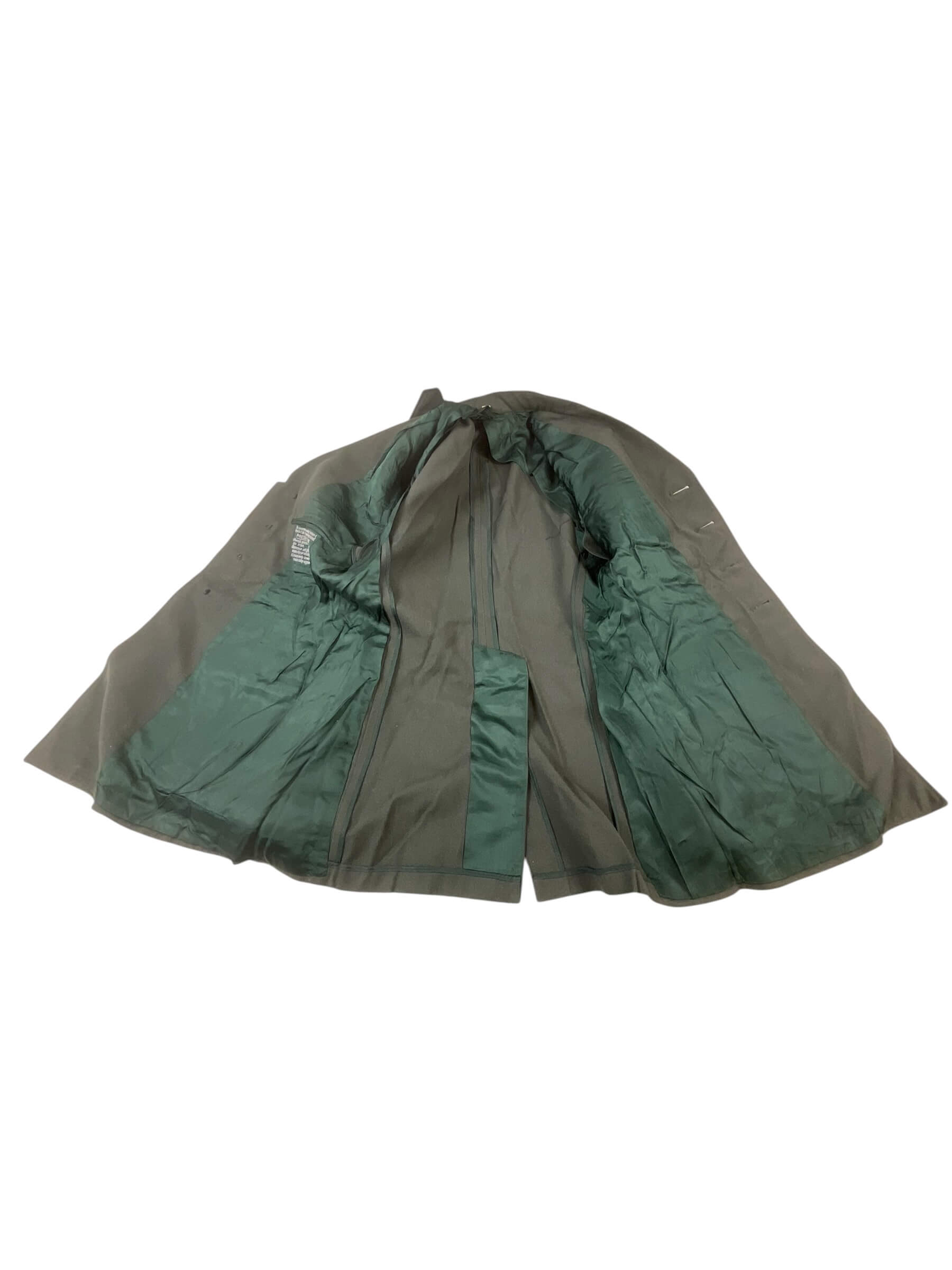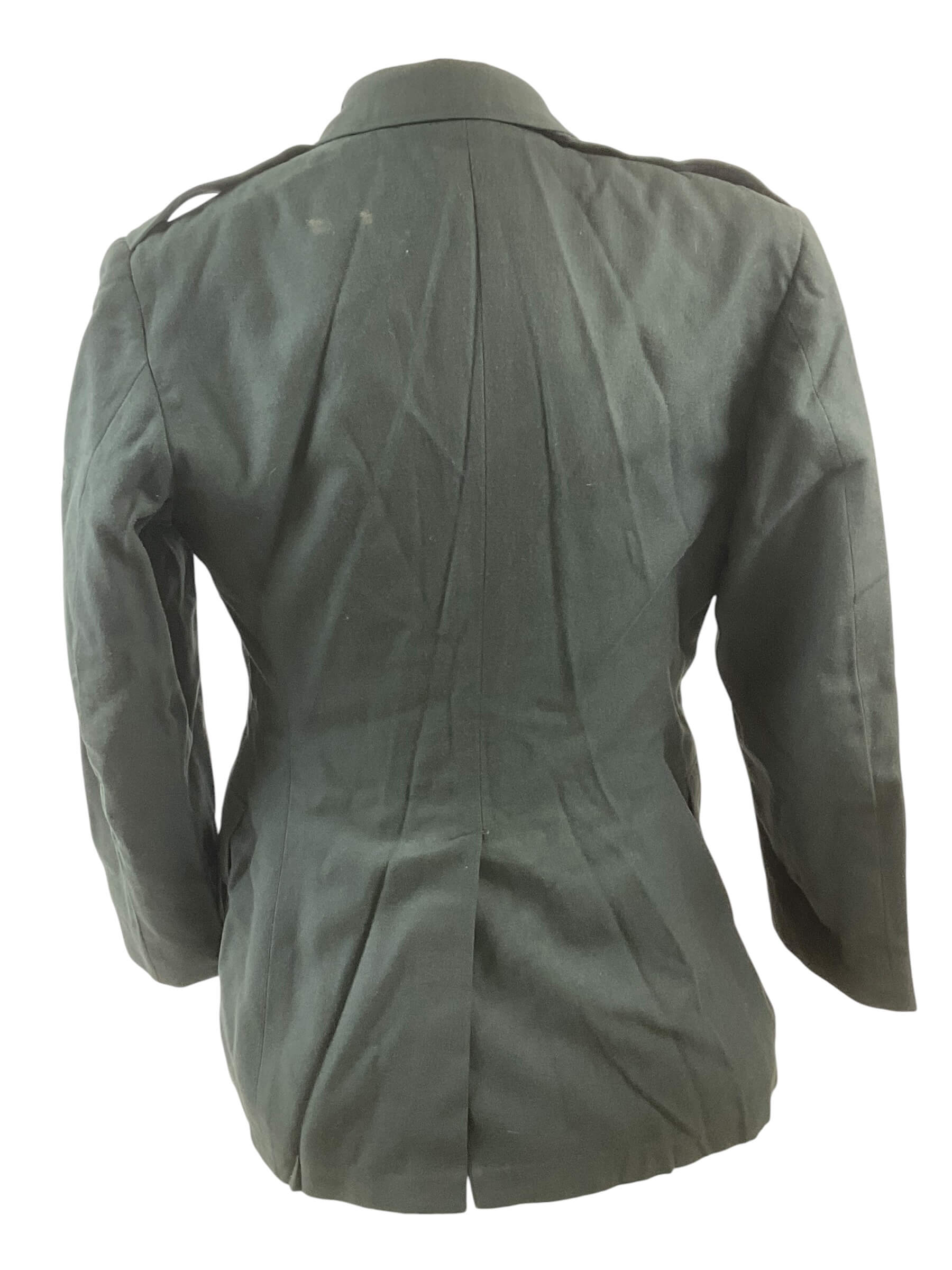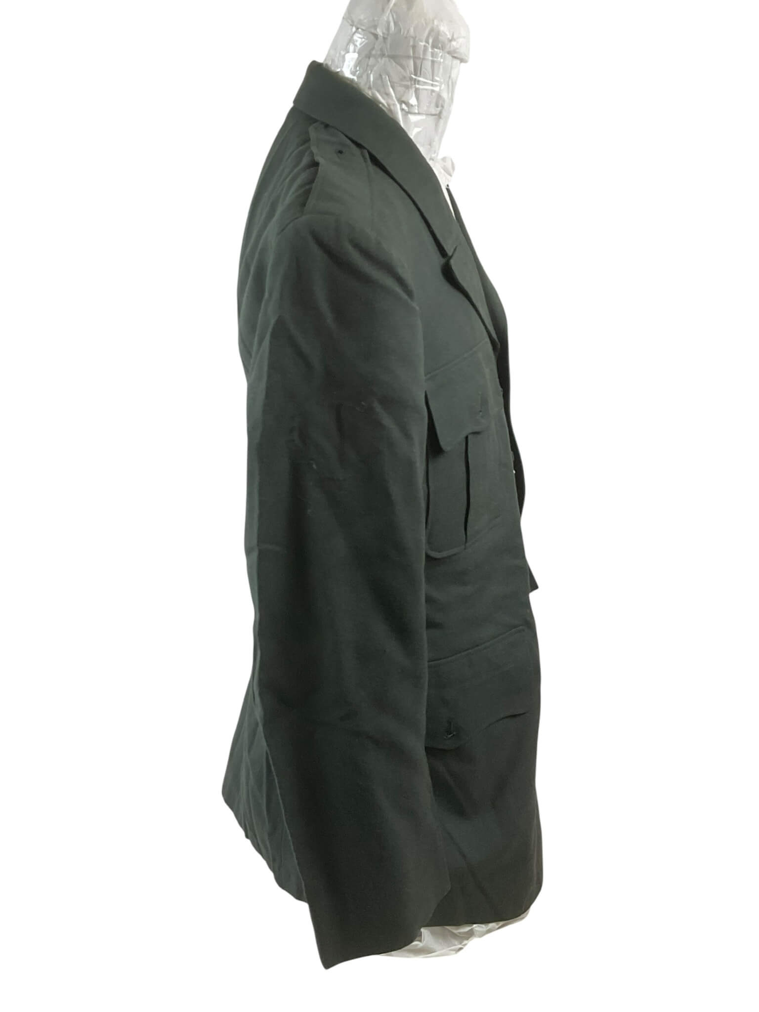 This listing features an original US Army Men’s 4 Pocket Jacket in size 36 Regular, dated 1959. The jacket follows the standard pattern introduced post-World War II and utilized by U.S. Army personnel during the late 1950s and early 1960s. Constructed from durable olive drab wool-blend material, it includes four front pockets with scalloped flaps and button closures for secure storage. The front fastens with a set of brass buttons bearing the U.S. Army insignia, and the interior label is clearly marked with the size and the 1959 date. The jacket features adjustable waist tabs and buttoned cuffs. Designed as a service uniform piece, it would have been worn by enlisted men and junior officers during formal occasions and daily administrative duties. Its construction, materials, and markings are consistent with issued garments from this era, reflecting period standards of U.S. military apparel.