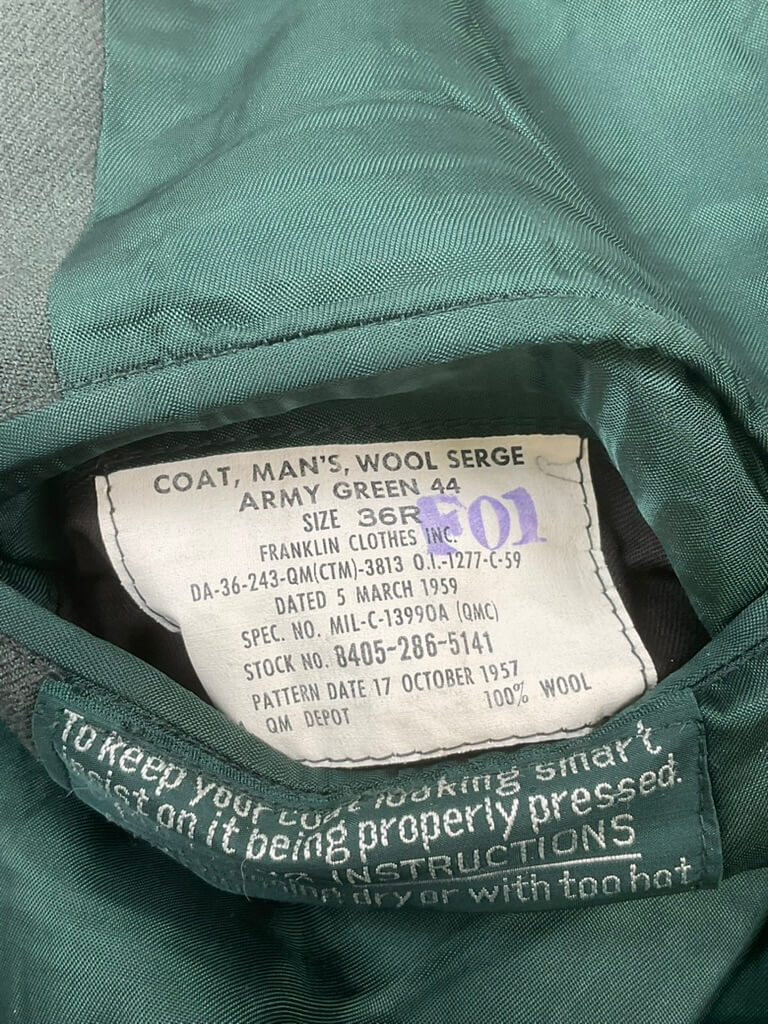 US Army Men’s 4 Pocket Jacket Size 36 Regular Dated 1959