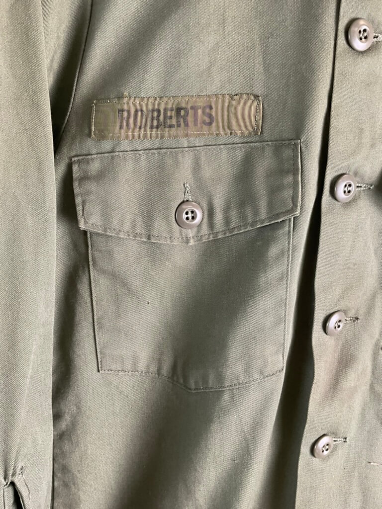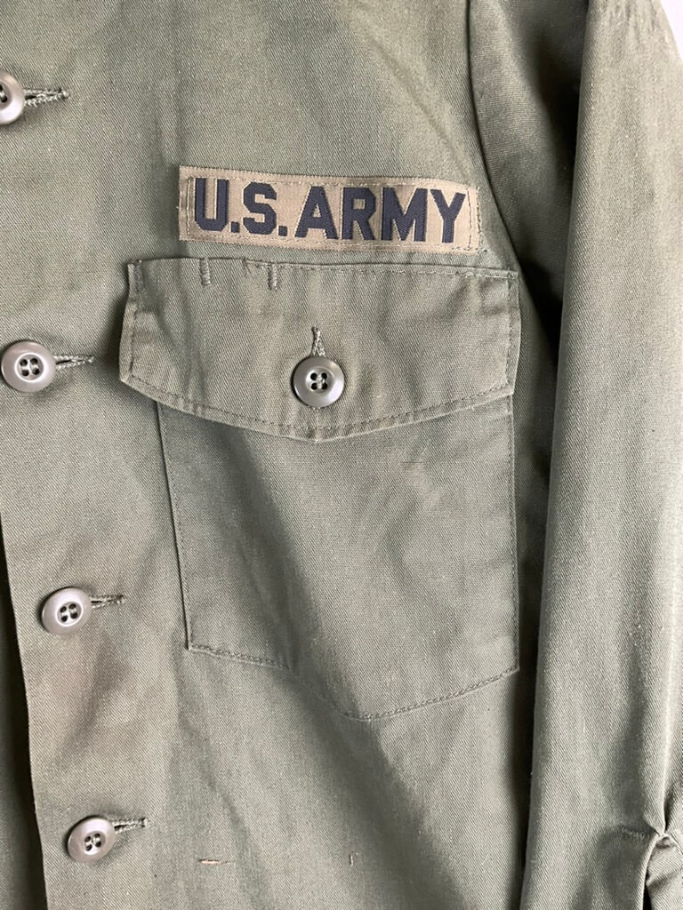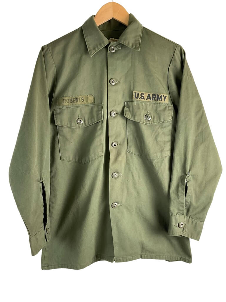 The US Army Men’s Shirt Size 14 1/2 Named is an official military garment designed for service personnel. It features a standard army design, and the size mentioned is 14 1/2. The distinguishing characteristic of this shirt is the provision for name personalization, adhering to military protocol and standards.