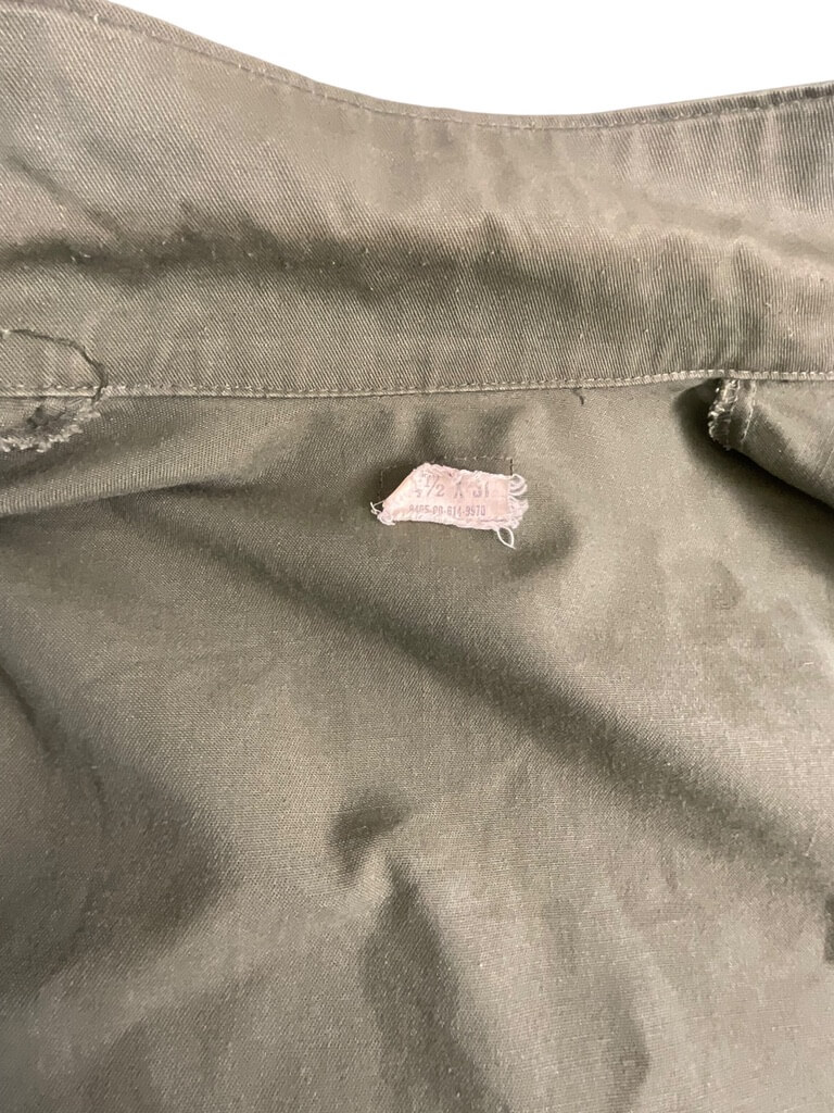 The US Army Men’s Shirt Size 14 1/2 Named is an officially certified military garment suited to men with a neck size of 14 1/2 inches. Traditionally worn by US Army personnel, this shirt bears distinct features reminiscent of the Army’s rich heritage. The shirt is crafted from durable, high-quality materials to withstand harsh conditions and has been carefully tailored for optimum comfort and maneuverability. Its color and design strictly follow the standard Army specifications, including removable patches displaying the individual soldier’s name. It has a regular fit style to ensure it can be worn over light undergarments. The US Army Men’s Shirt Size 14 1/2 Named is both symbolically important to those in service and popular among collectors and enthusiasts of military apparel. It exemplifies quality and dedication to duty, much like the men and women of the US Army. Please note that this product is an original piece not intended for unauthorized reproductions.