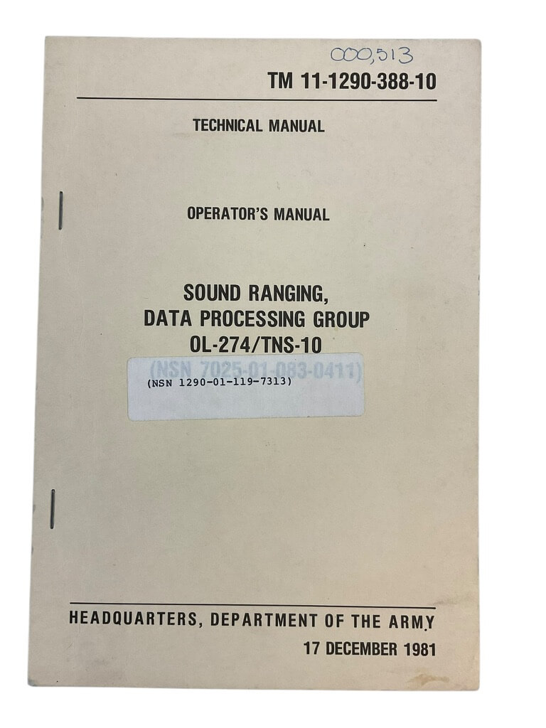 This is in used condition, a paperback book on the US Army Sound Ranging Operators 1981 Manual Reference Book. Pages are numbered by sections and has lots of information and pictures. Great for reference. I ship all over the world. GST of 5% is applicable on all sales within Canada.