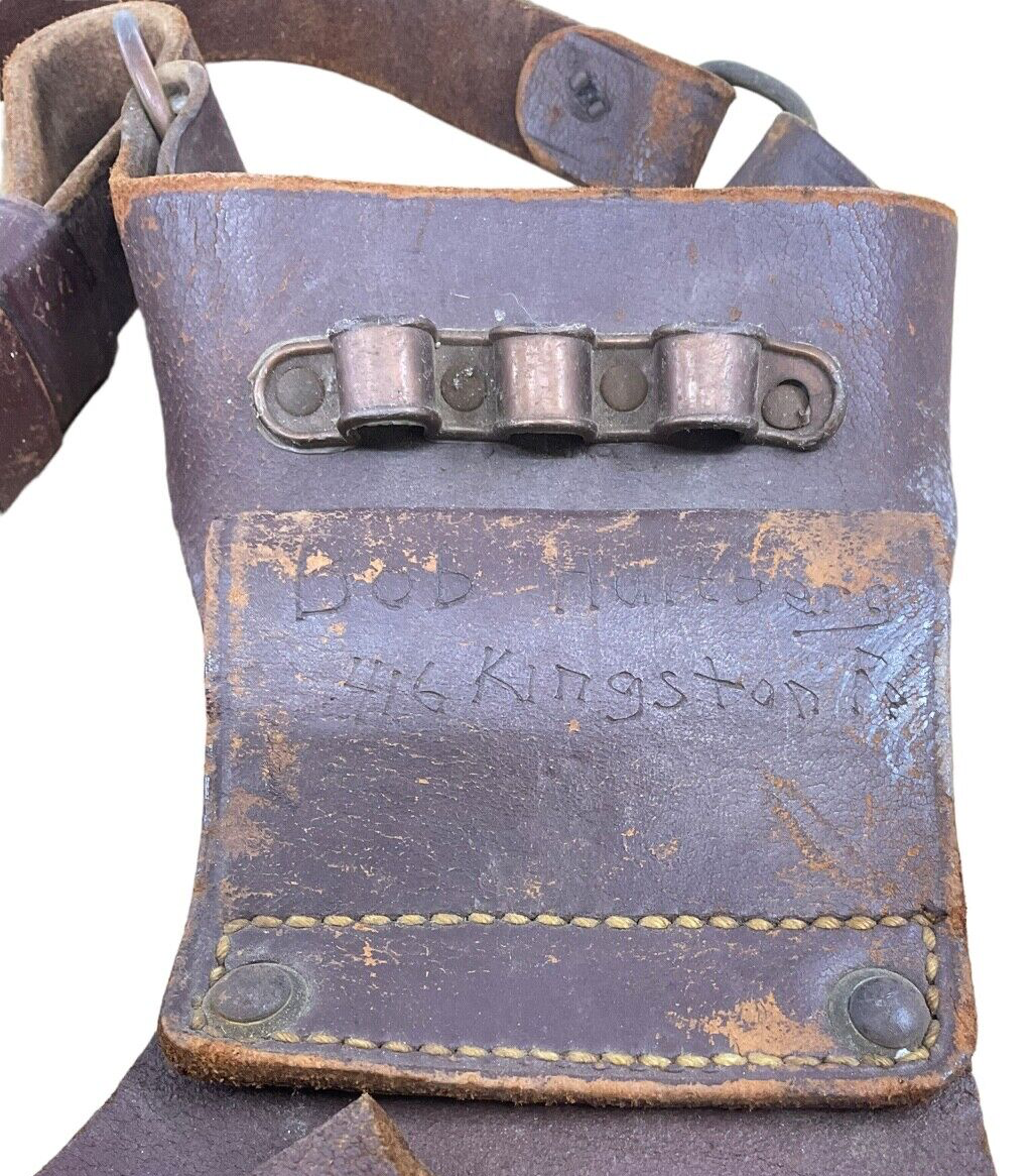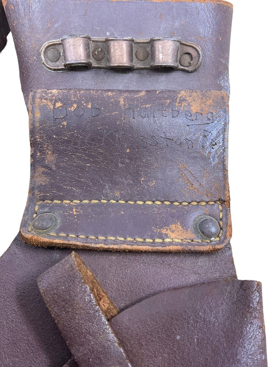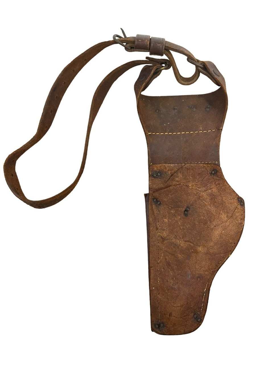 Step back in time with this vintage US Army toy leather holster and belt set. Designed with remarkable attention to detail, this collectible piece is a nostalgic replica of the gear once used by brave soldiers. The finely crafted leather holster is designed to hold a toy gun securely, while the adjustable belt ensures a perfect fit for any aspiring young soldier. Authentic brass accents and durable stitching showcase the high-quality craftsmanship typical of vintage toys. Whether you’re a collector or looking for a unique gift, this vintage US Army toy leather holster and belt set offers a perfect blend of history, play, and timeless charm. Let your imagination run wild as you recreate epic adventures and heroic battles from days gone by with this classic piece of military-inspired memorabilia.