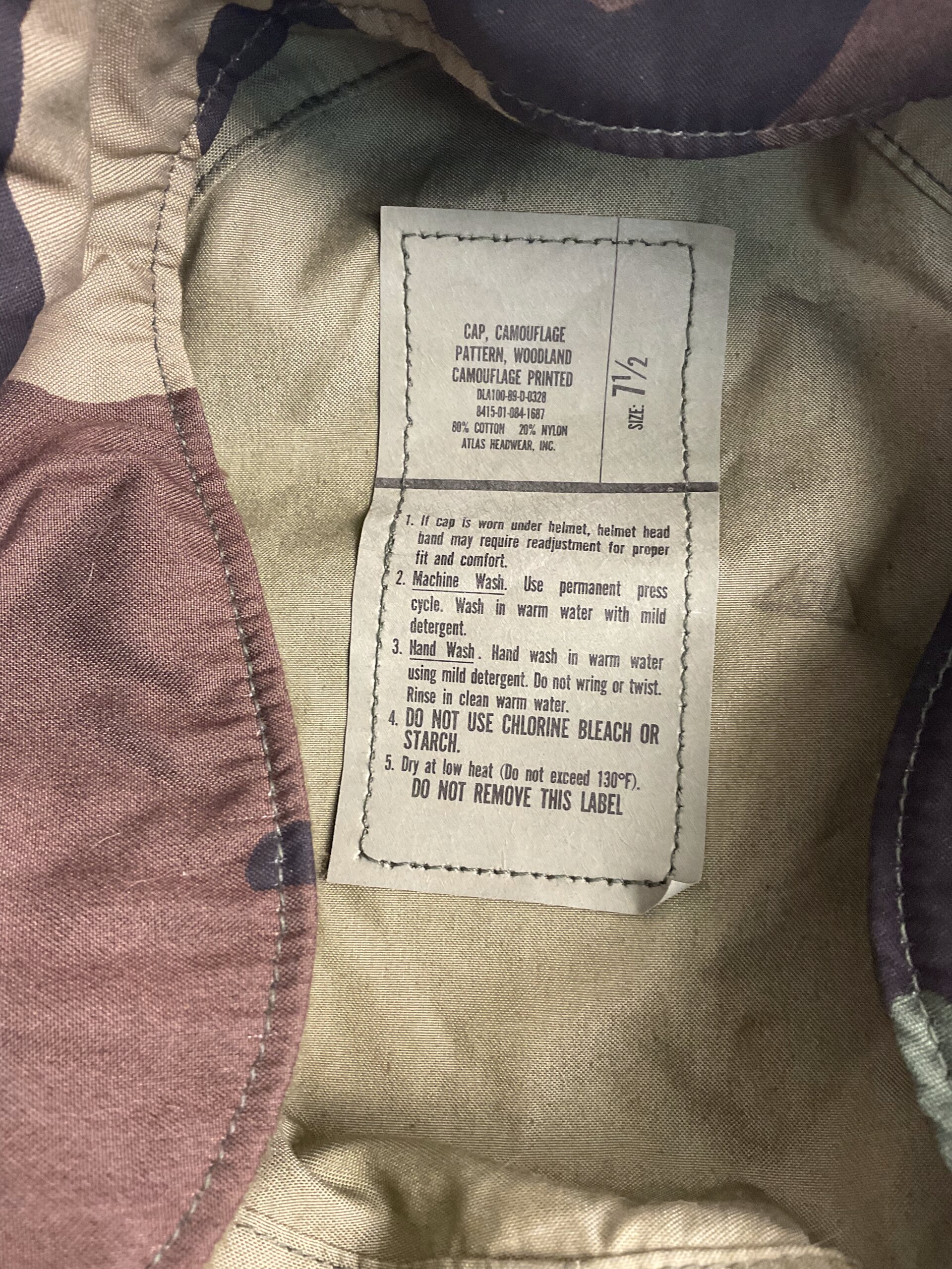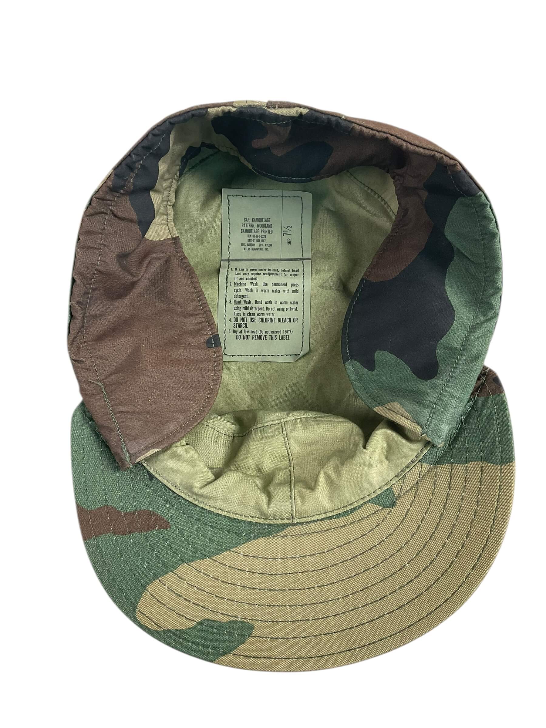 US Army Woodland BDU Camouflage Baseball Cap Hat Size 7 1/2