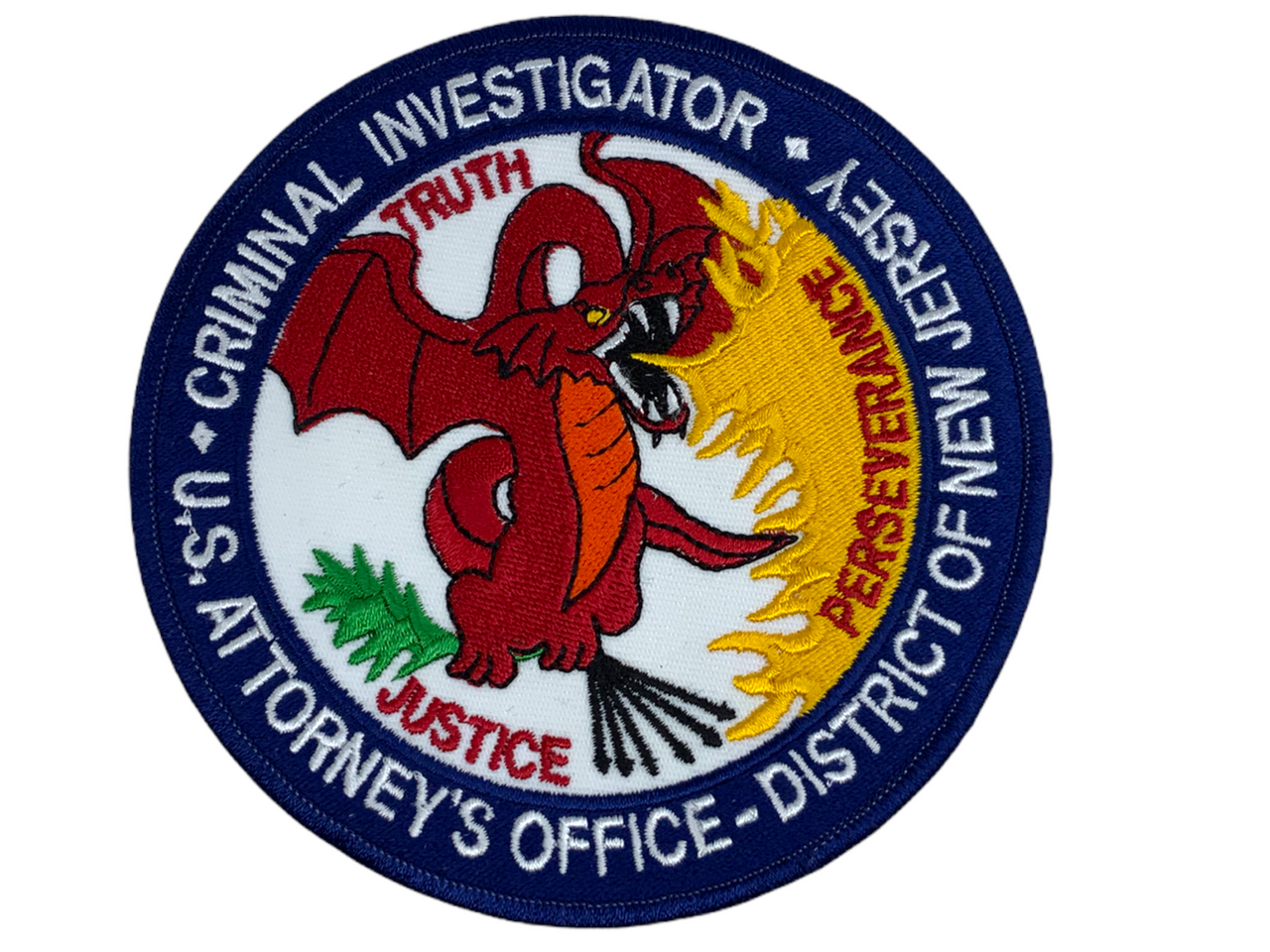 US Attorneys Office District of New Jersey Criminal Investigator Patch 4.5 inches.