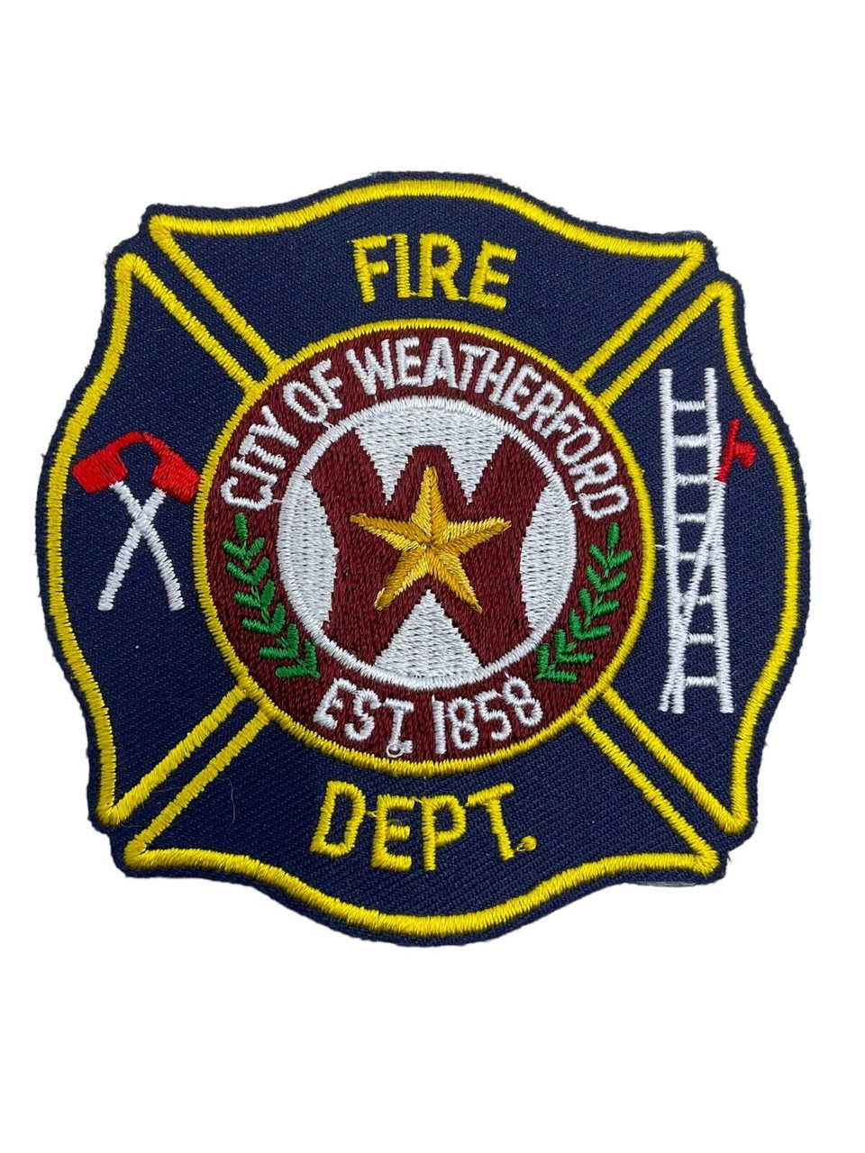 US City of Weatherford Texas Fire Department Patch The US City of Weatherford Texas Fire Department Patch is a symbolic representation of the valor, dedication, and community spirit embodied by the firefighters serving this historic Texas city. This intricately designed patch features vivid color schemes and detailed imagery that reflect both the heritage and resilience of Weatherford. Emblazoned with elements that might include the state flag, the firefighter’s emblem, and iconic local landmarks, the patch represents a proud tradition of protecting lives and property. Often worn on the uniforms of the brave men and women of the Weatherford Fire Department, this patch not only serves as a professional identifier but also as a badge of honor that signifies rigorous training, unwavering courage, and a steadfast commitment to public safety. Collectors and enthusiasts alike treasure it for its craftsmanship and the story it tells about the guardians who serve the Weatherford community.