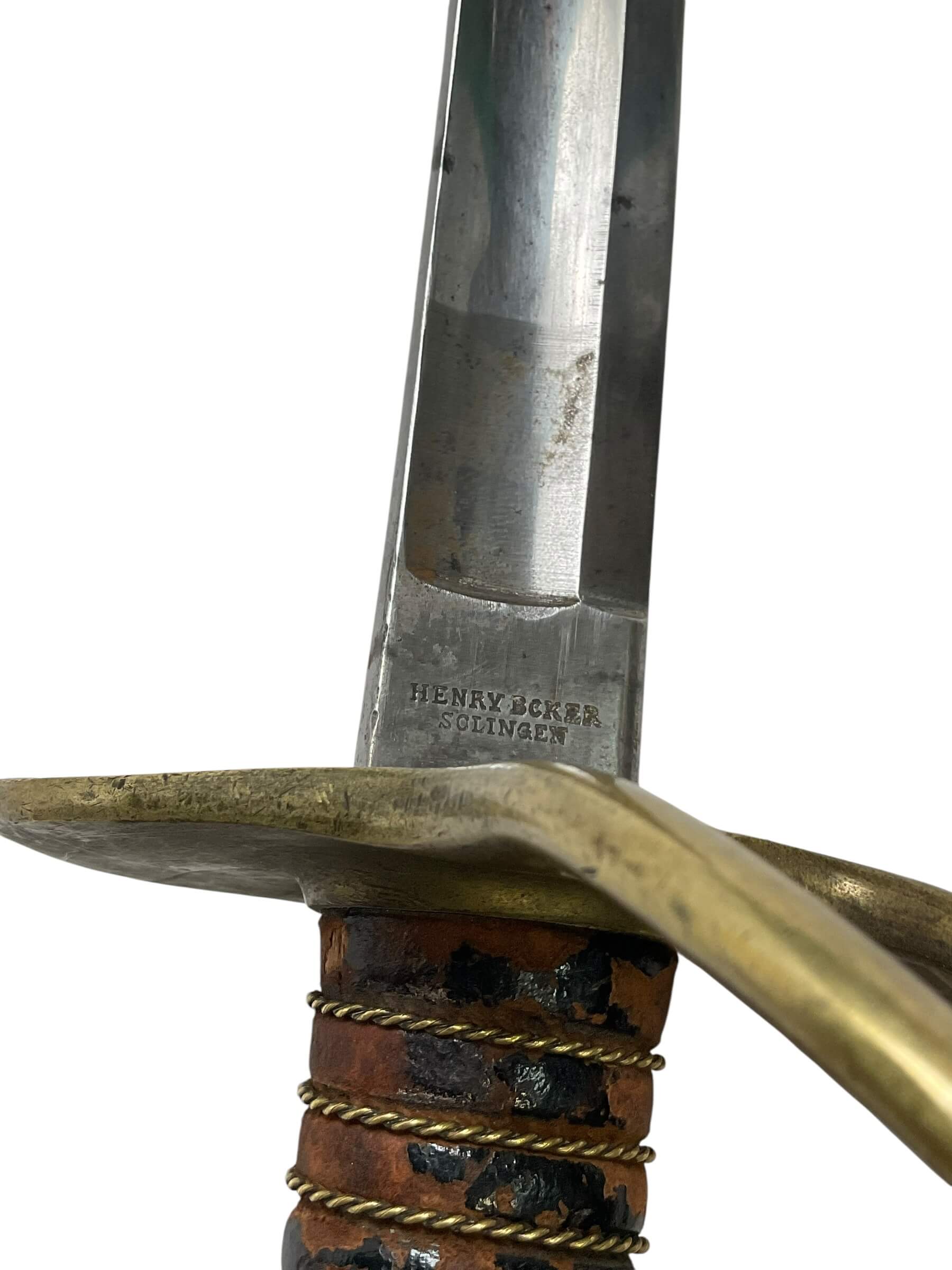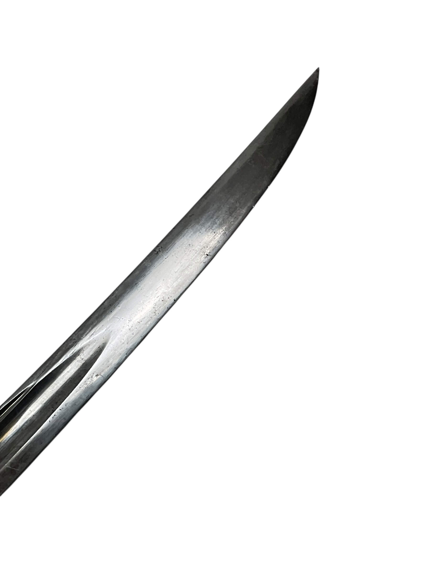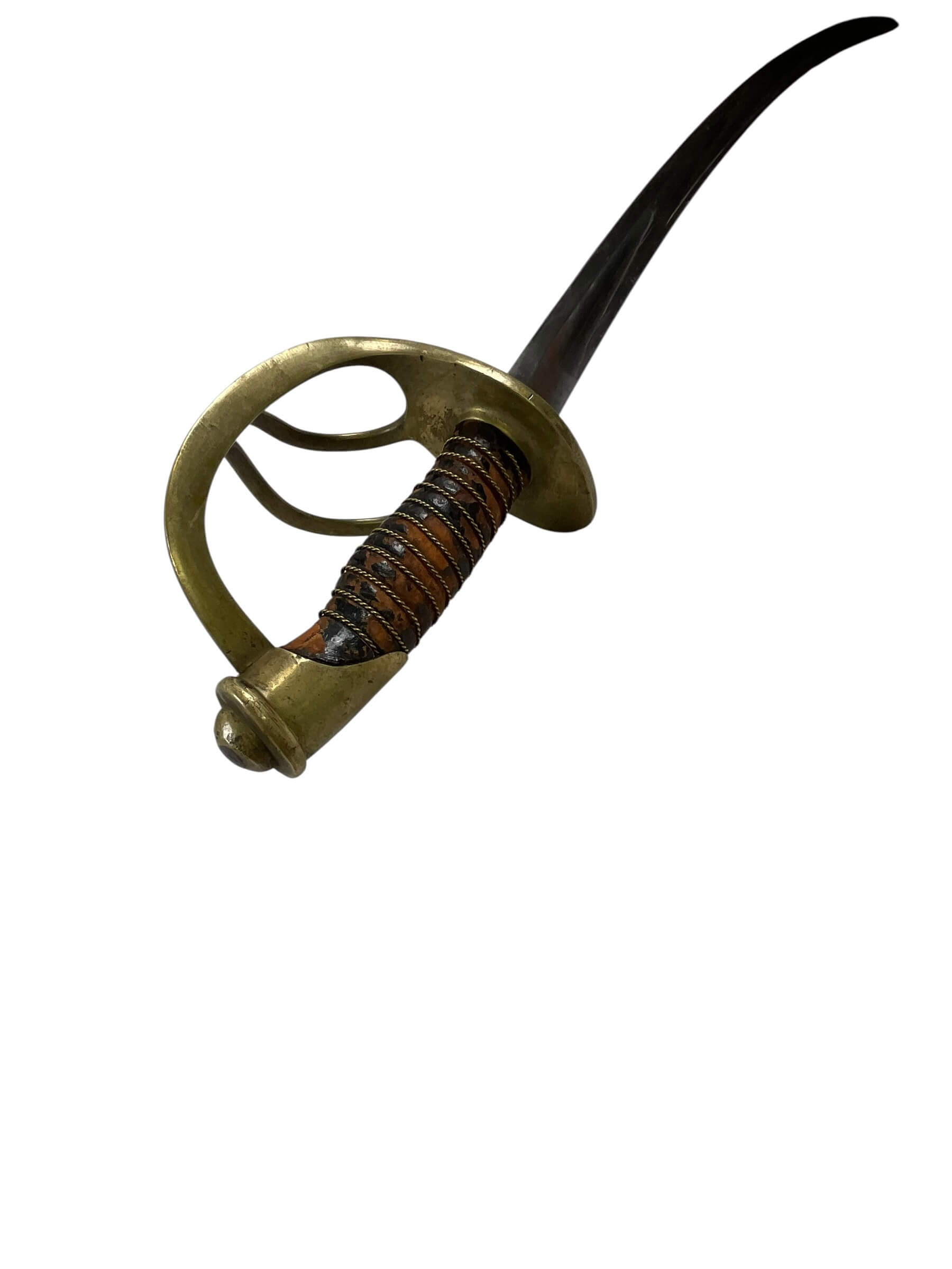 The US Civil War Model 1860 Cavalry Officer’s Sword marked “1st Alabama Cavalry” is a historical edged weapon associated with Union cavalry forces during the American Civil War. The Model 1860 design features a slightly curved, single-edged blade, typically measuring around 35 inches in length, suited for both cutting and thrusting actions. The hilt includes a brass guard with a three-branch design, a leather-wrapped grip, and a steel scabbard, reflecting standard issue for cavalry officers of the period. The “1st Alabama Cavalry” marking denotes association with the notable regiment composed primarily of Southern Unionists from Alabama. This unit served in campaigns throughout the Western Theater, including roles in major operations such as the Atlanta Campaign. Swords bearing regimental marks offer tangible connections to specific units and illustrate patterns of equipment issued to or carried by officers. Such artifacts contribute valuable context to the study of Civil War military history and material culture.