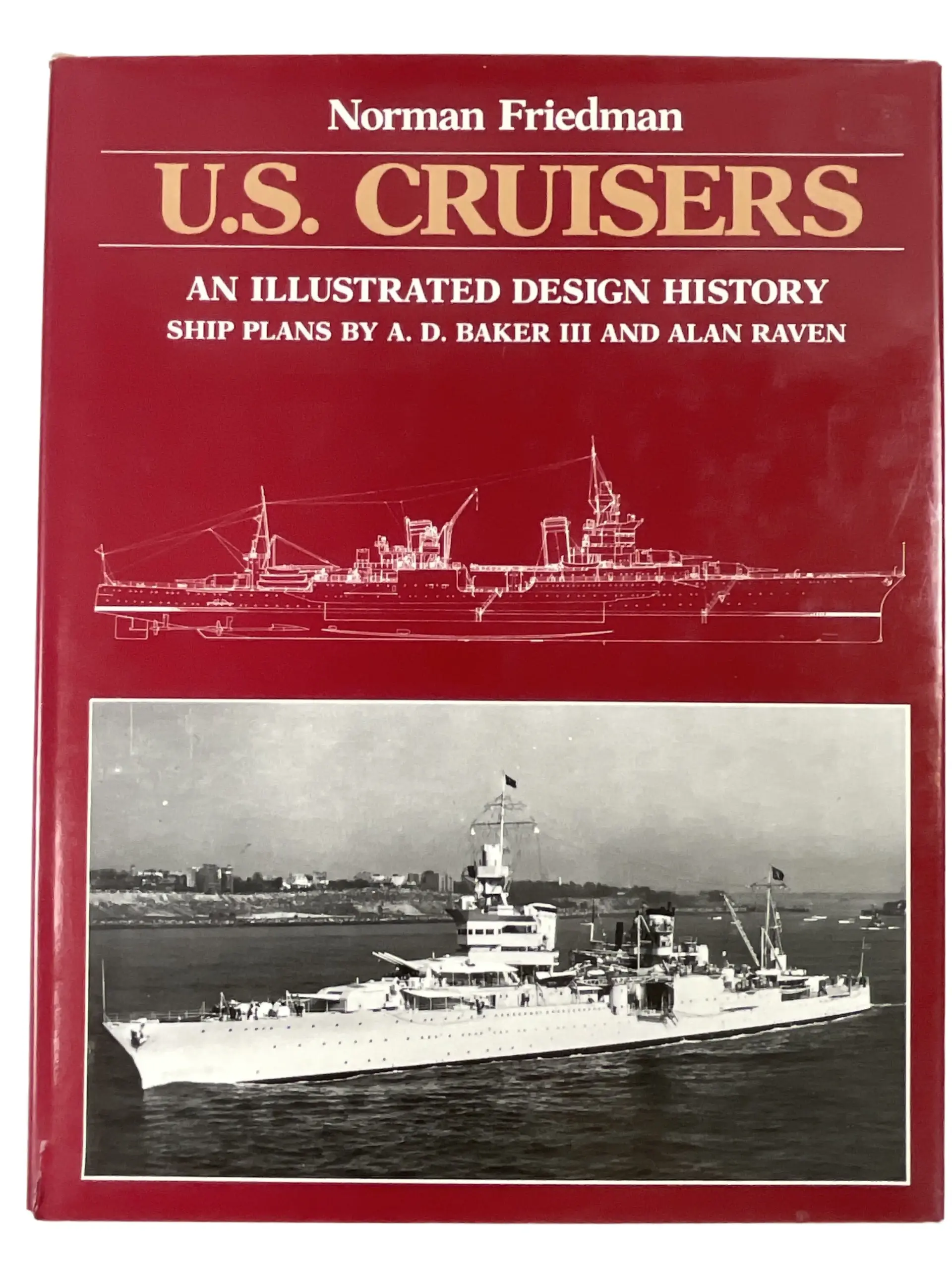 US Cruisers: An Illustrated Design History is a comprehensive reference book authored by Norman Friedman. This hardcover volume details the evolution and development of United States Navy cruisers, covering design, construction, and operational use from their inception through the mid-20th century. Organized chronologically, the book explores various classes of cruisers, featuring technical specifications, design features, and historical context. Numerous illustrations, including photographs, line drawings, and diagrams, provide additional insight into ship configurations and design changes over time. This reference is widely regarded for its detailed research, use of official archival sources, and expert analysis. The book is intended for historians, researchers, and military enthusiasts seeking factual information on US Navy cruisers. This listing is for a used hardcover copy, showing typical signs of previous use. The volume is suitable for reference, study, or collection within the field of naval and military history. Total of 496 pages.