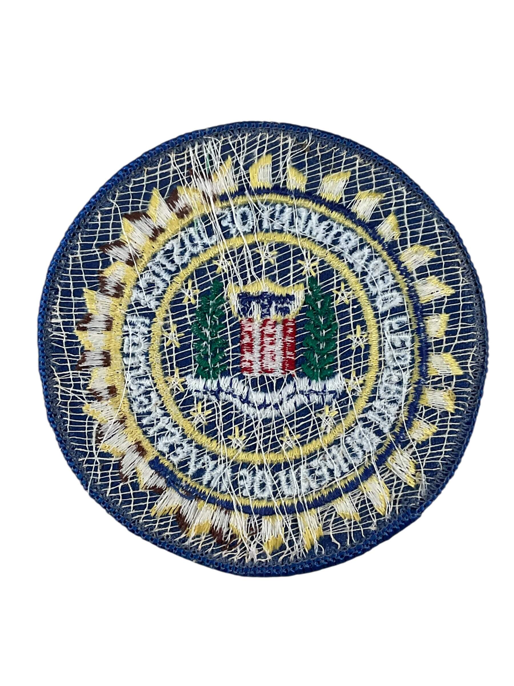 This is an authentic patch representing the Federal Bureau of Investigation (FBI), a principal investigative arm of the United States Department of Justice. The patch features the official insignia of the FBI, typically comprising the department’s name, the agency seal, and other relevant symbolic elements that denote authority and jurisdiction. FBI patches are used as part of law enforcement uniforms, identification, and for official purposes within the agency. These items are sought by collectors interested in modern and historical U.S. law enforcement memorabilia. The design and coloration of the patch adhere to standards set by the FBI for uniform distinction and organizational recognition. Such patches serve as an example of government-issued insignia and are recognized symbols of federal law enforcement in the United States. This item is suitable for those researching or collecting official departmental patches connected to American federal agencies and their respective histories.