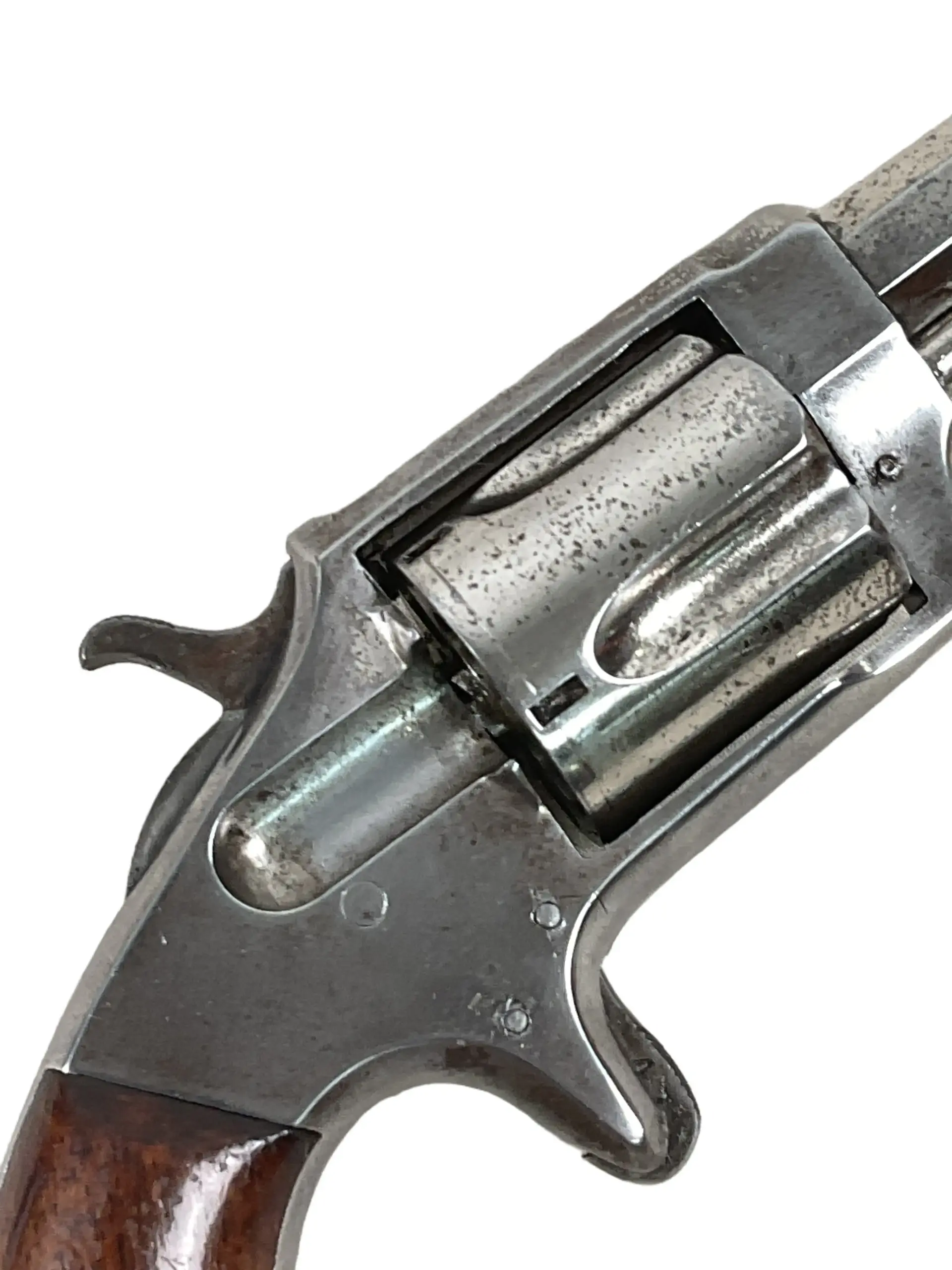 The US Iver Johnson Favorite No 2 is a 5-shot revolver chambered in .32 Rimfire, produced in the late 19th century. This example falls under the “antique” classification and does not require a firearms permit in most jurisdictions. Manufactured by Iver Johnson Arms & Cycle Works, a well-known American firearms maker, the Favorite No 2 features a solid frame, spur trigger, and a 2.5 to 3-inch barrel, typical of personal defense revolvers from the era. The cylinder holds five rounds, utilizing the .32 Rimfire cartridge common in pocket revolvers of the time. This model was designed for simplicity, suited for civilian use, and is noted for its compact profile. Its design reflects late 19th-century advancements in firearms technology, providing insight into the period’s manufacturing techniques and self-defense requirements. This authentic antique piece is valued by collectors of early American firearms and historical military-related items.