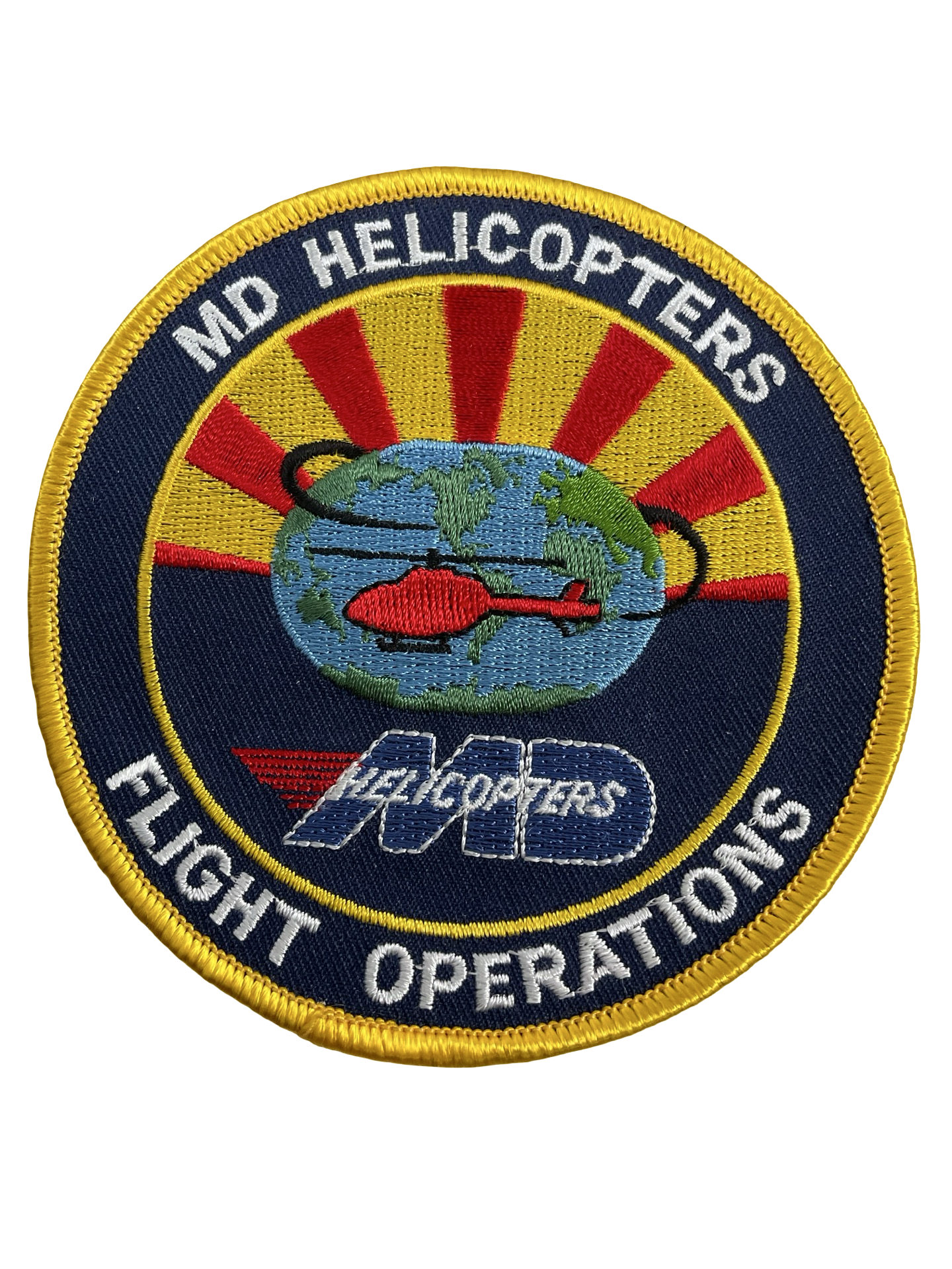 The US MD Helicopters Flight Operations Patch represents personnel involved with flight operations of MD Helicopters aircraft within military service. Commonly worn on flight suits, jackets, or uniforms, this patch serves as an identifier for crew members and support staff assigned to MD Helicopters units. The design typically features the MD Helicopters insignia or imagery related to specific helicopter models, such as the MD 500 series, along with associated text indicating flight operations. Constructed from durable embroidered fabric, these patches are designed for visibility and long-term use in various operational environments. Patches of this type are part of the broader tradition of military aviation insignia, which facilitate unit identification and esprit de corps among aircrew and ground support teams. This item functions strictly as an insignia and is a collectible relevant for those interested in modern military aviation history, helicopter operations, or insignia from US military organizations.