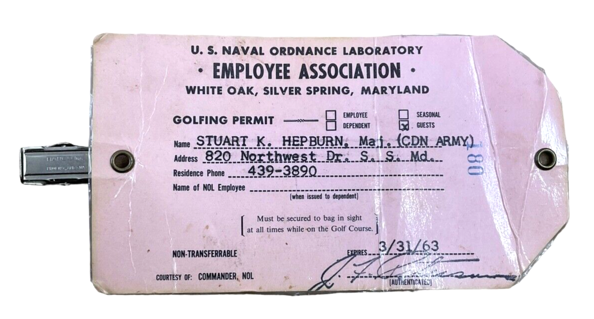 US Naval Laboratory USN Employee Association Canadian Named Golfing Permit 1963