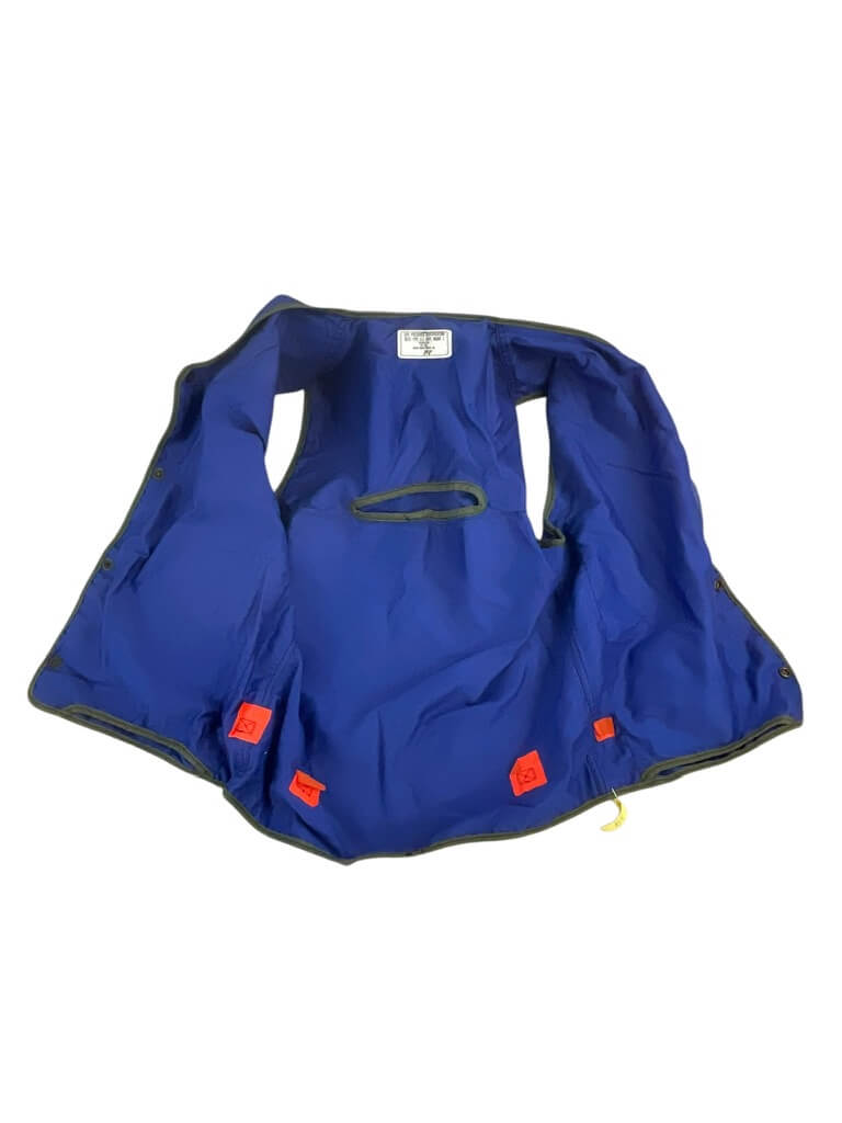 he ‘US Navy Aircraft Carrier Blue Flight Deck Tractor Driver Safety Vest’ is a crucial piece of safety equipment designed for tractor drivers on US Navy aircraft carriers. This high-visibility vest comes in a striking shade of navy blue, matching the signature color of the US Navy. Made from durable, wear-resistant materials, it is designed to withstand the harsh conditions on flight decks. The vest features reflective strips to enhance visibility, ensuring the wearer can be easily seen in all weather conditions or lighting situations. It also includes multiple pockets for storing essential tools or items. This safety vest not only provides an extra layer of protection but also helps in identifying the tractor drivers among the crew, promoting efficient operations on the busy flight deck. It is a prime example of the commitment of the US Navy to the safety of its personnel.