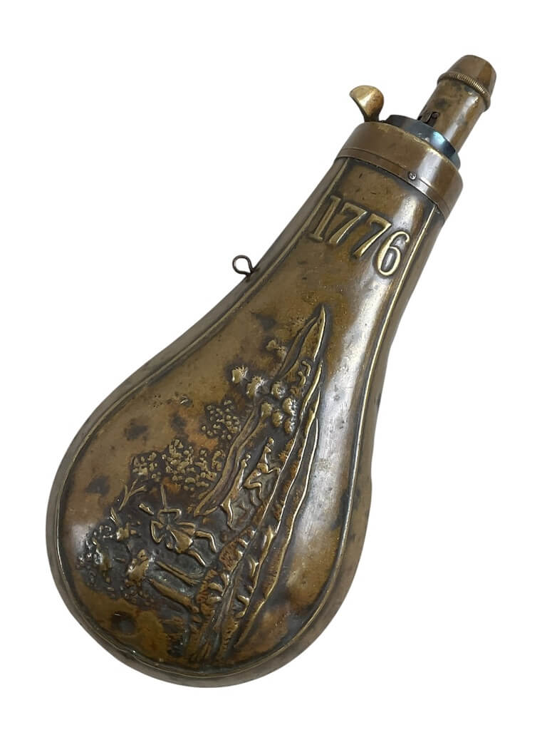 The ‘US Rev War Patriotic Powder Horn’ is a captivating artifact from the era of the American Revolutionary War. It holds immense historical significance, embodying the spirit of patriotism that fueled the fight for American independence. These powder horns were utilitarian tools used by soldiers to carry black powder, an essential component in firing their muskets. The uniqueness of this piece lies in its detailed inscriptions and carvings, often featuring symbols of liberty and defiance against British rule. The US Rev War Patriotic Powder Horn serves as a tangible link to the past, offering insight into the lives of those who were at the heart of America’s struggle for freedom. This artifact is a prized possession for collectors and enthusiasts of American history, reflecting the resilience and determination of the early patriots.