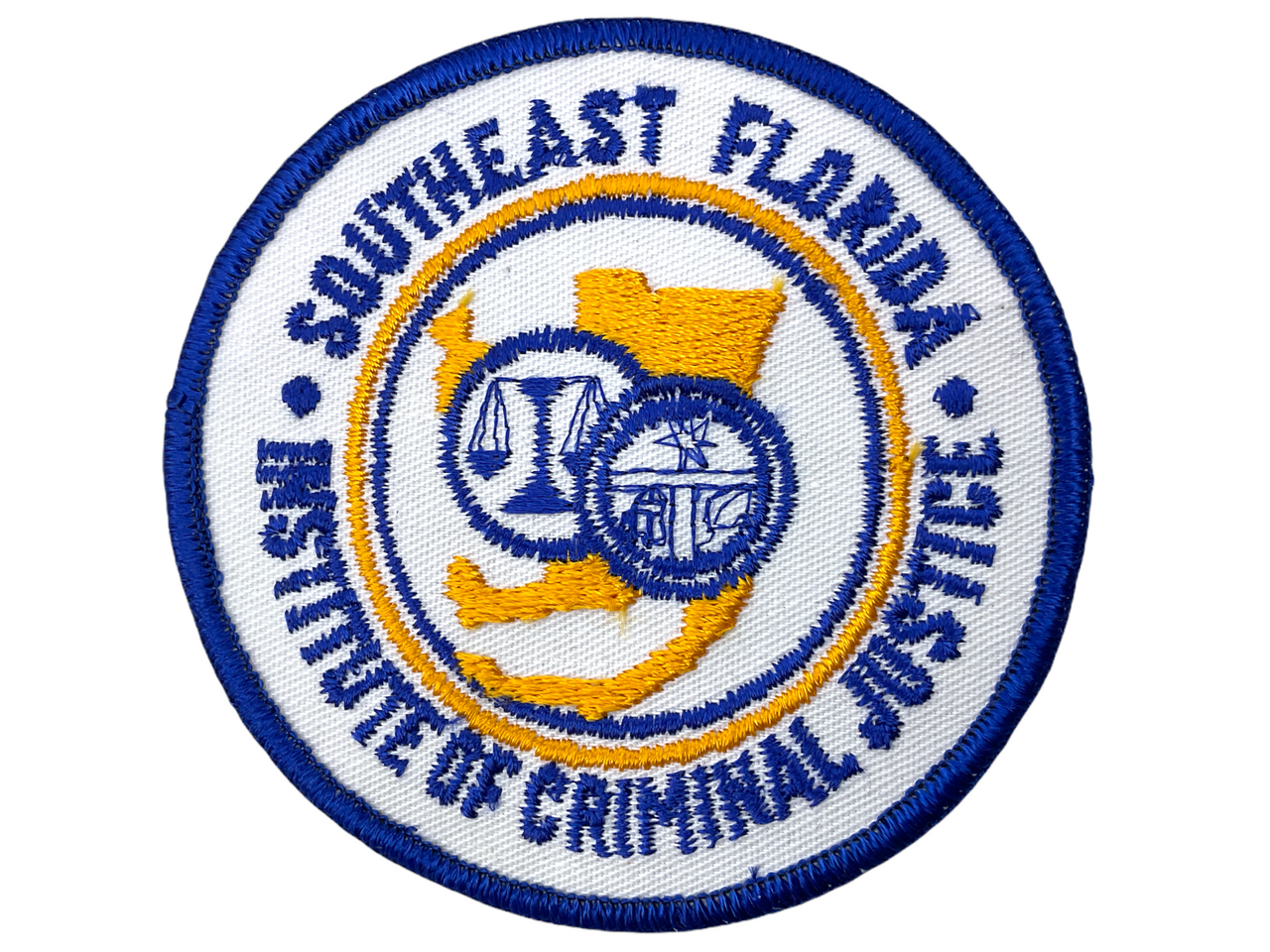 The US South East Florida Institute Of Criminal Justice Police Patch is a distinctive emblem representing one of the premier law enforcement training institutions in the region. This finely crafted patch embodies the dedication, honor, and commitment of the institute in preparing future police officers and justice professionals. Typically featuring design elements such as the institute’s crest, state or national symbols, and bold lettering, the patch symbolizes the rigorous training and high standards upheld by the institute. Collectors and law enforcement enthusiasts highly prize this patch not only for its aesthetic appeal but also for its representation of excellence in criminal justice education. Wearing this patch signifies a readiness to serve and protect the community, embodying the values of integrity, service, and justice that the South East Florida Institute stands for.