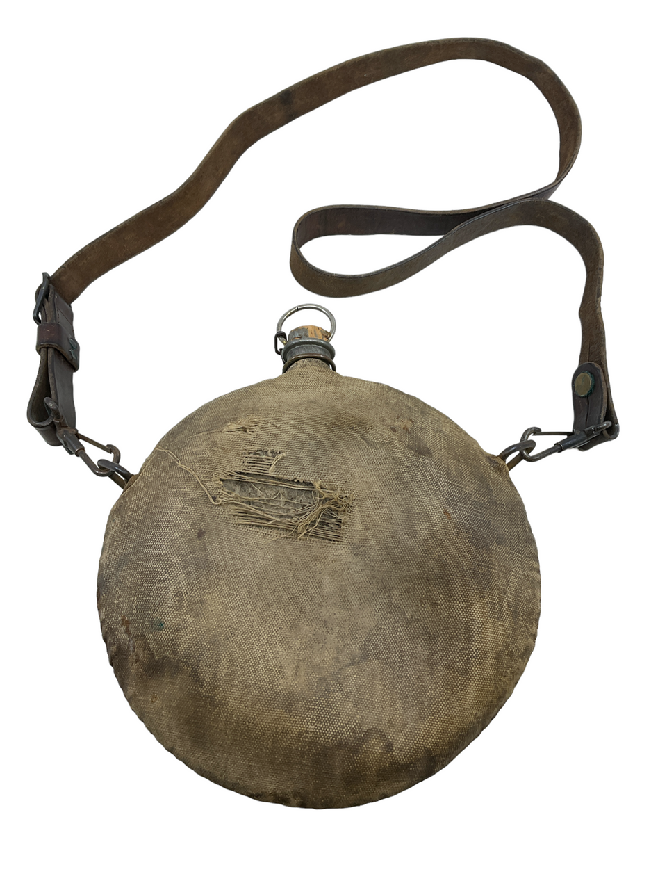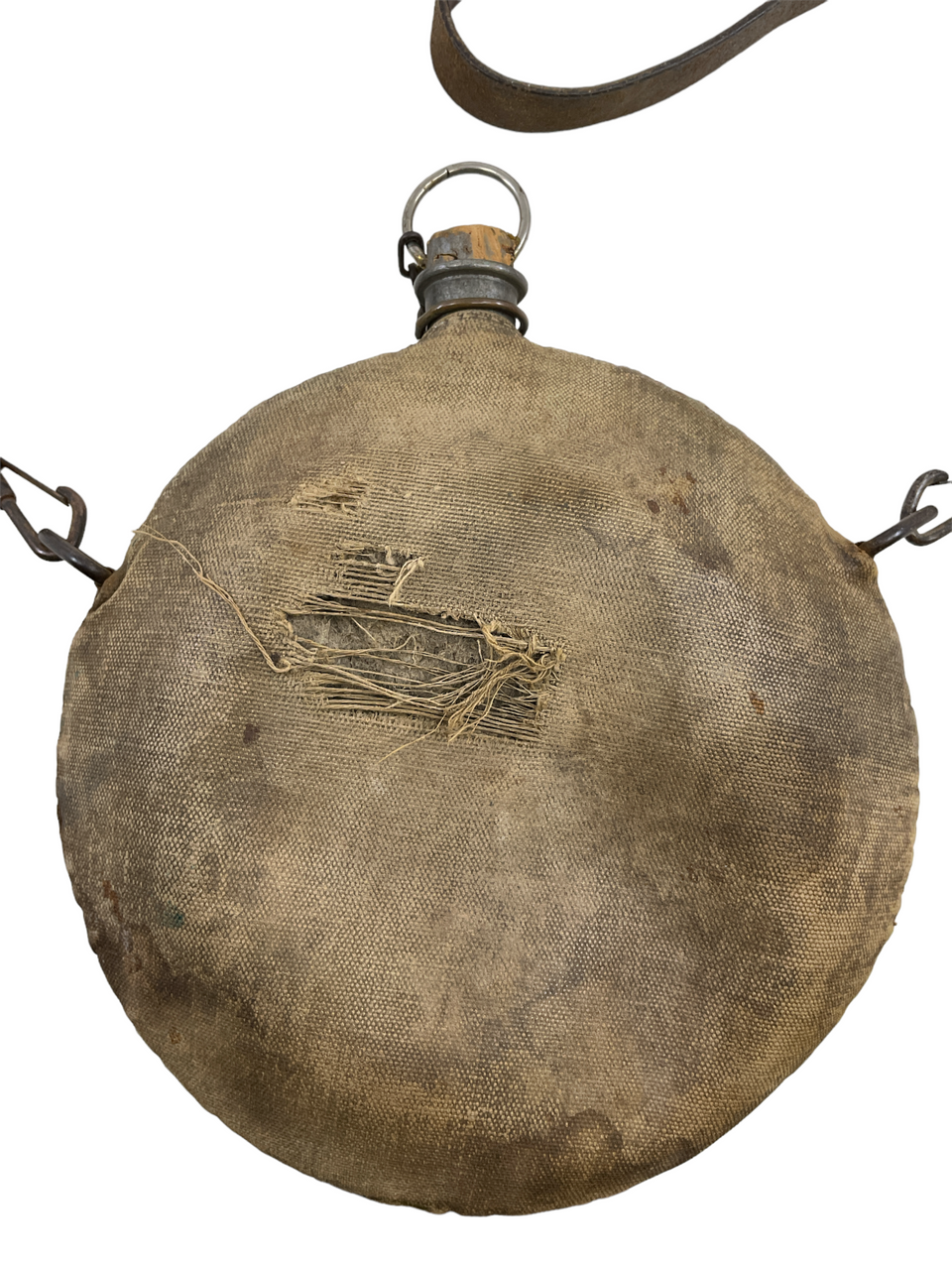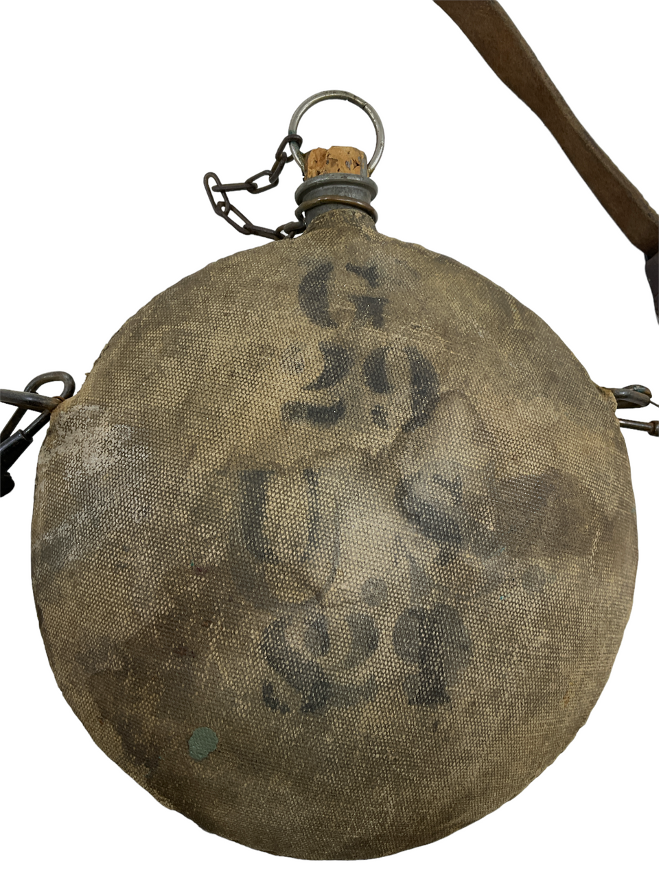 US Spanish American War Canteen With Canvas Cover & Leather Carry Strap