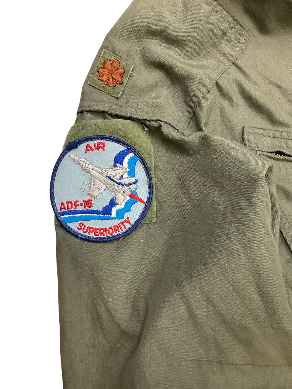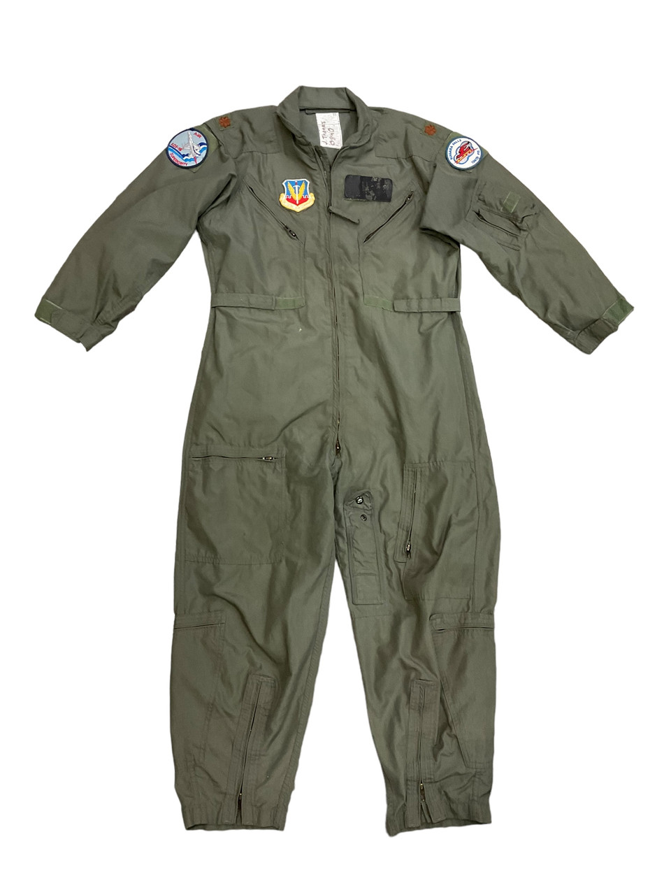 The US USAF 136th Fighter Interceptor Squadron F-16 Majors Flight Suit is a distinguished piece of military aviation history. This flight suit, meticulously crafted for major pilots within the squadron, bears the individual aviator’s name, highlighting a proud tradition of personalized gear for those who serve. The 136th Fighter Interceptor Squadron, known for its elite performance and precision flying, operates the advanced F-16 Fighting Falcon, a versatile multirole jet fighter. The flight suit not only symbolizes the bravery and dedication of the pilots but also serves as a functional garment designed to ensure their safety and comfort during high-stakes missions. Collectors and military enthusiasts will appreciate the historical significance and the connection to the valorous service members who defended the skies. Whether on display or preserved as a cherished memento, this named flight suit is a testament to the individual contributions of America’s aerial defenders.