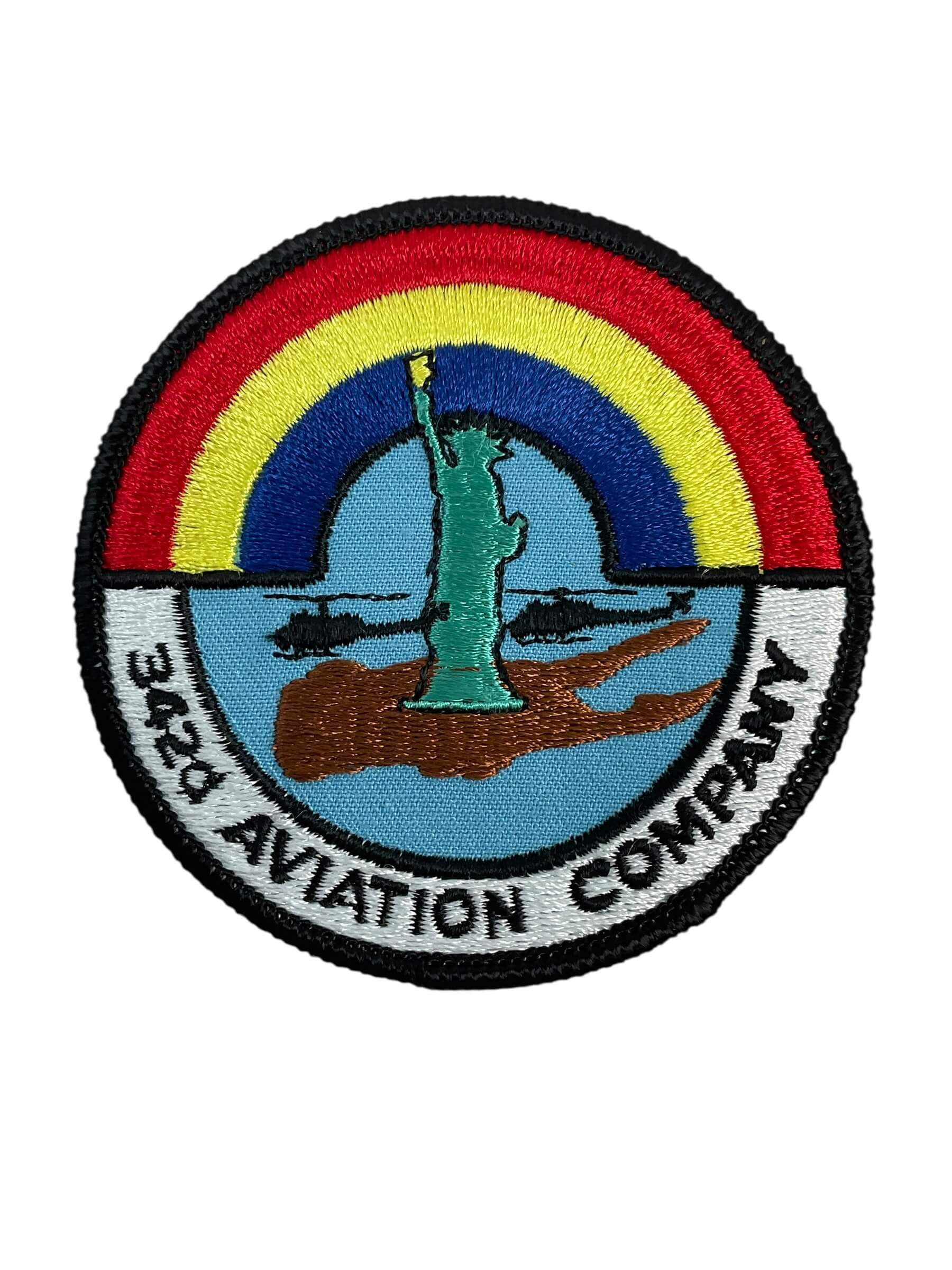 The US USAF 342d Aviation Company Squadron Patch represents the insignia of the 342d Aviation Company, a unit within the United States Air Force. This embroidered patch typically features distinctive colors and symbols associated with the unit, designed to be worn on uniforms or collected as a piece of military heritage. The 342d Aviation Company was involved in various missions, with its personnel contributing to a range of aviation operations. Squadron patches like this one serve as a visual identifier for unit members and are often used to foster group identity and pride. The patch is constructed with durable materials suitable for display or period uniform restoration. Collectors and historians value such patches for their connection to specific Air Force units and for insights they offer into military organization and unit history. This item is offered as an example of military insignia associated with post-World War II United States Air Force aviation units.
