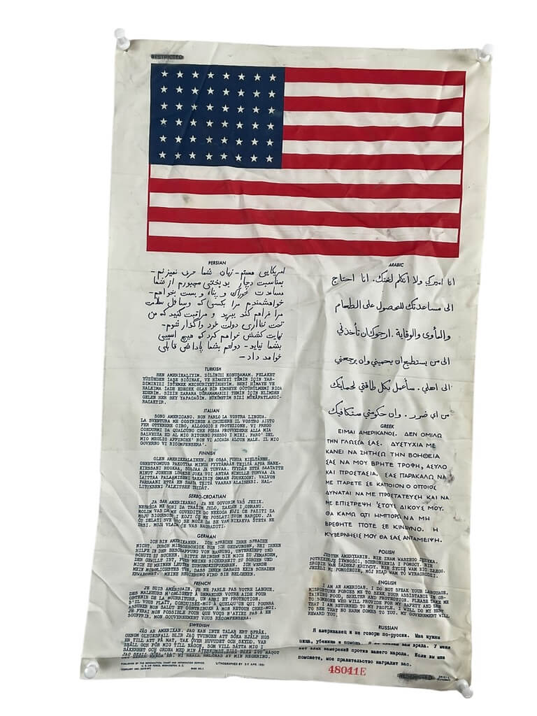 This title refers to a unique piece of US military history: the US USAF Blood Chit Escape Evasion 1951 Dated. A Blood Chit is an official document carried by military personnel during missions in hostile territory. It contains a message in multiple languages, requesting locals to assist the bearer to safety and promises a reward for such assistance. This particular Blood Chit dates back to 1951 during the Korean War and belonged to a member of the United States Air Force (USAF). This historical artifact is a testament to the dangerous missions carried out by brave Air Force servicemen and the reliance on local civilians for safe passage. It serves as a poignant reminder of the complexities of war and the shared humanity that can sometimes bridge the gap between nations.