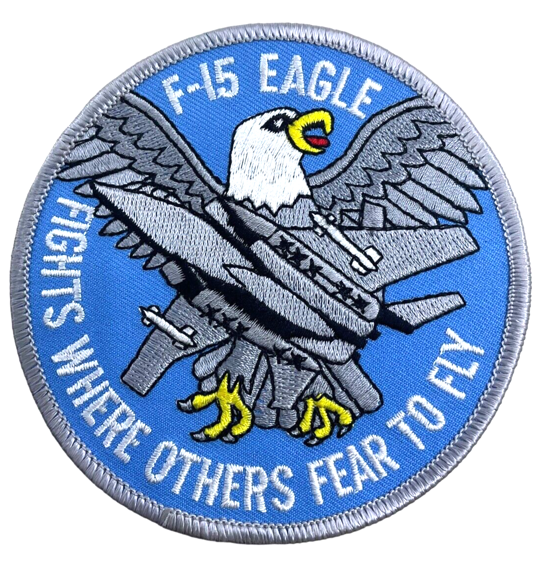 US USAF F-15 Eagle Fighter Squadron Patch The “US USAF F-15 Eagle Fighter Squadron Patch” is a distinguished emblem worn by members of the elite F-15 Eagle fighter units in the United States Air Force. This intricately designed patch represents the unmatched aerial prowess and dedication of the pilots and crew who operate the F-15 Eagle, a premier twin-engine, all-weather tactical fighter aircraft known for its incredible speed, agility, and combat capabilities. The patch typically features iconic imagery and symbols associated with the squadron, including eagles, lightning bolts, and other elements that denote strength, vigilance, and tactical superiority. Wearing this patch signifies membership in a highly respected group known for their exceptional skill and commitment to defending the nation’s airspace. Perfect for collectors, veterans, and aviation enthusiasts, this patch embodies the heritage and pride of a renowned fighter squadron within the USAF.
