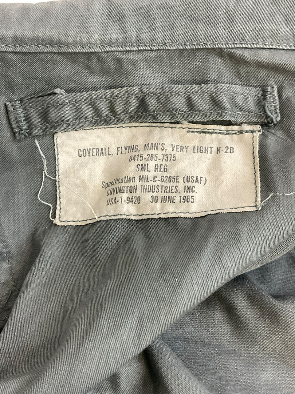 US USAF K-2B Flight Suit Sage Green Vietnam Size Small Regular Dated 1965