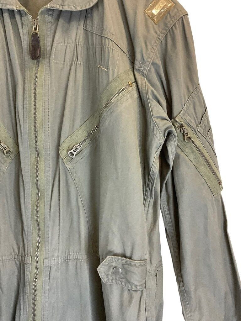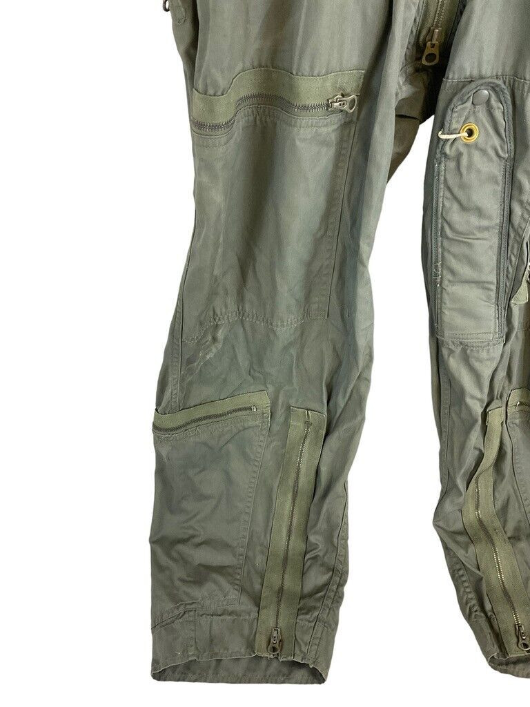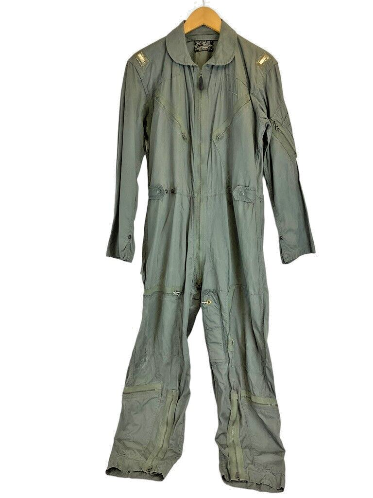 This original US USAF K2B Flight Suit, dated 1961, is a remarkable piece of military history. Crafted with lightweight, high-quality materials, it showcases the resilience and design efficiency of 1960s aviation gear. The flight suit is tailored to a men’s medium-short size, ensuring a comfortable yet snug fit for aviators of that era. Its practical design features multiple pockets for essential gear, sturdy zippers, and adjustable cuffs, making it both functional and durable. The suit’s olive-green color and authentic vintage patches add to its historical authenticity, appealing to collectors and historians alike. Whether you’re a military enthusiast, a collector of vintage aviation attire, or someone interested in unique historical garments, this K2B Flight Suit stands out as a valuable and intriguing artifact from the golden age of American aviation.